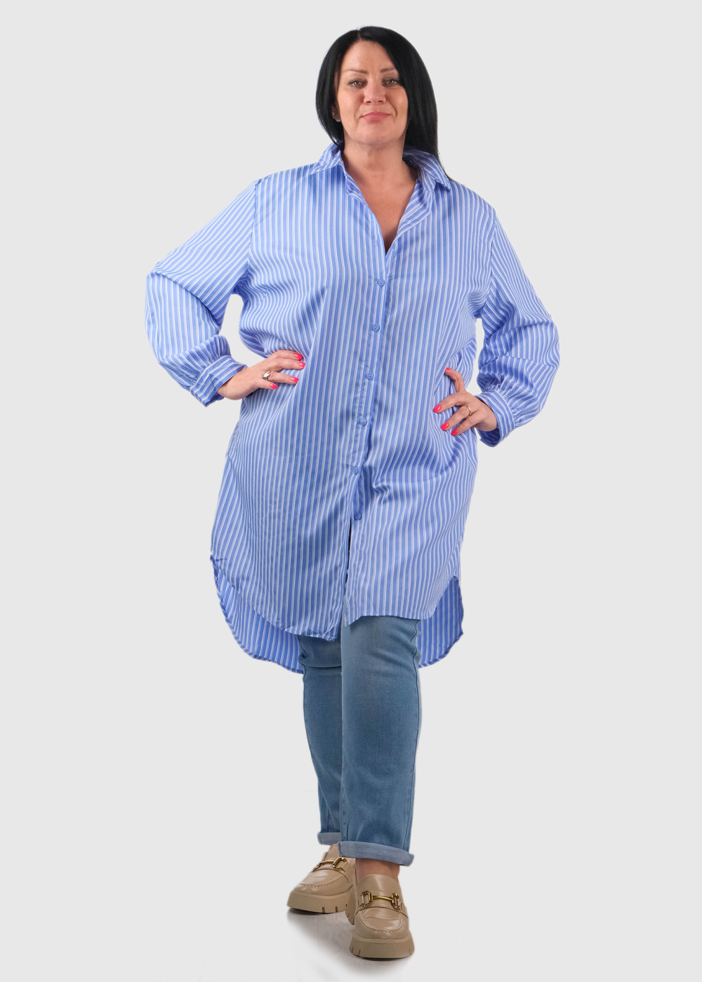 Aniceta Plus Size blue striped extended blouse