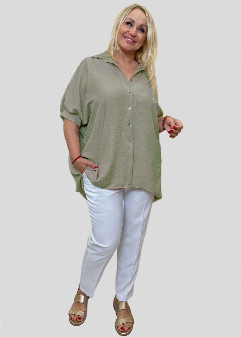 Janine khaki oversized blouse Janine khaki oversized blouse - back Janine khaki oversized blouse