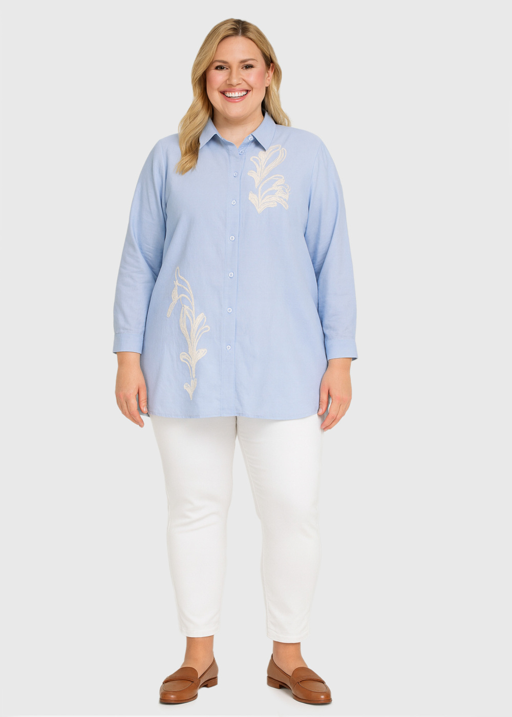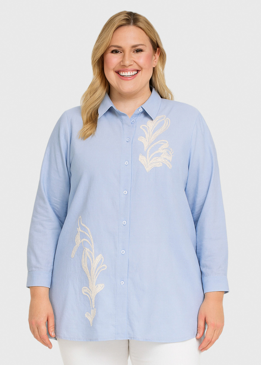 Tillen Plus Size light blue blouse with embroidery