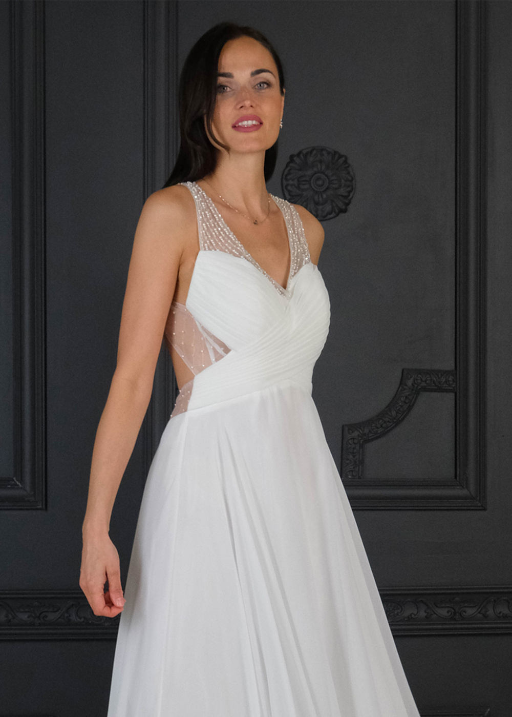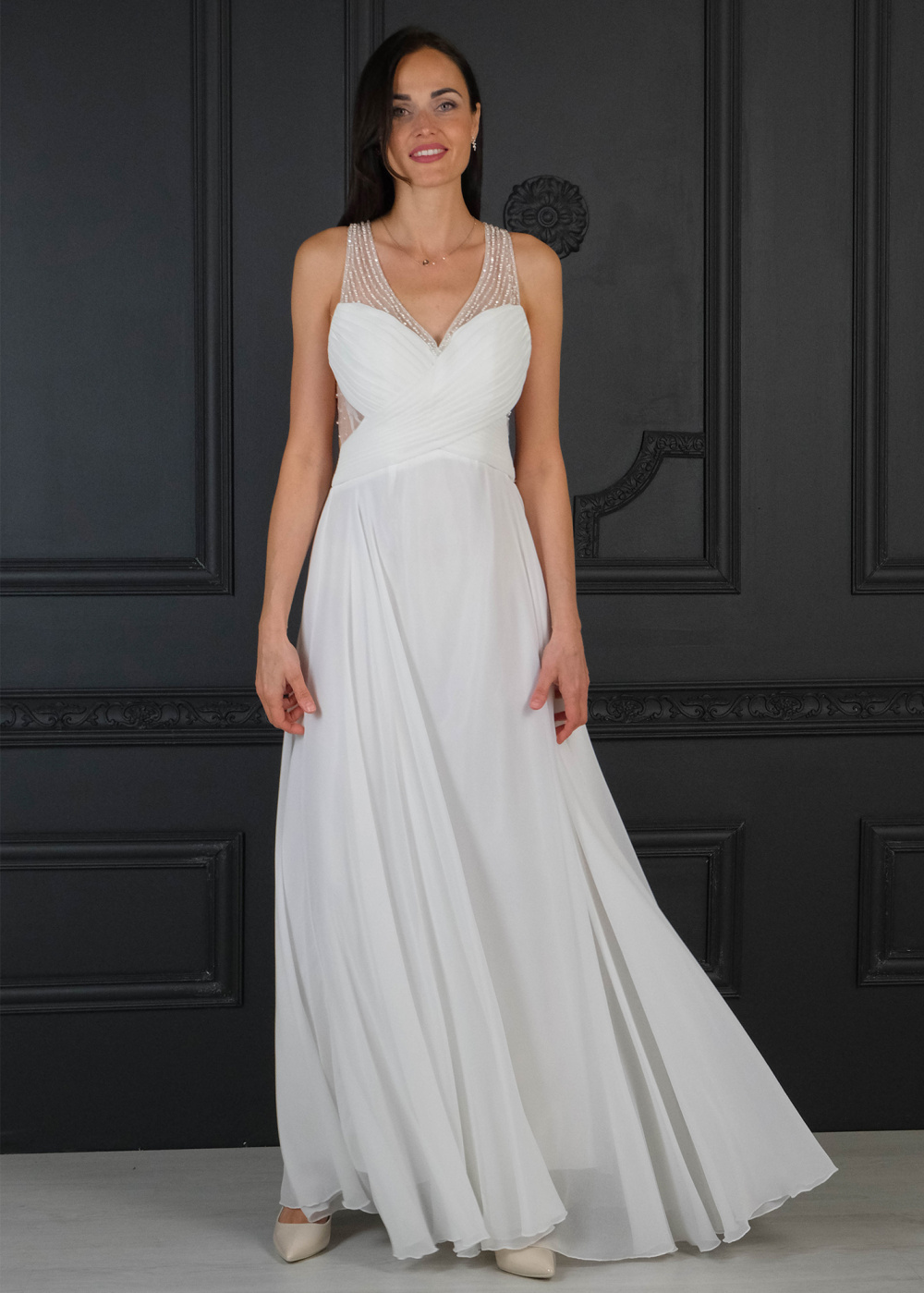 The model presents the product in size: S