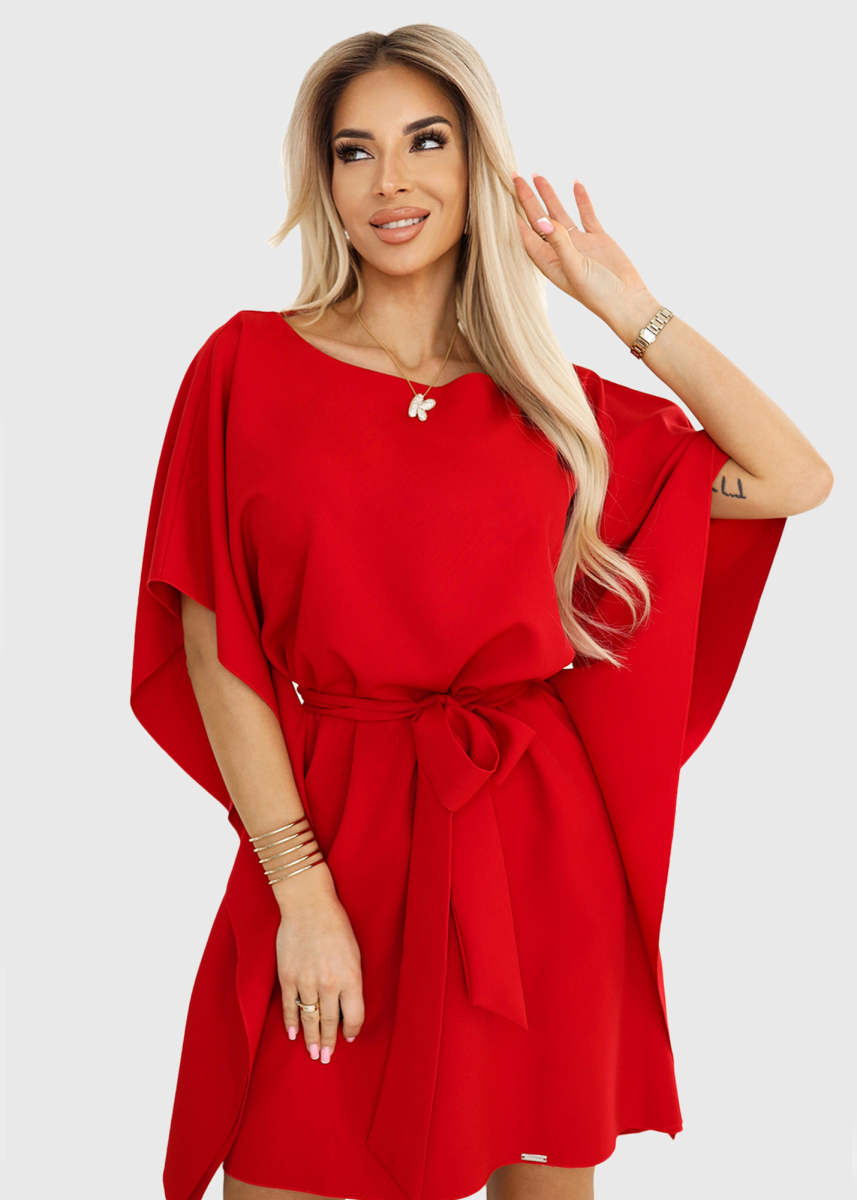 Agata red evening dress with belt