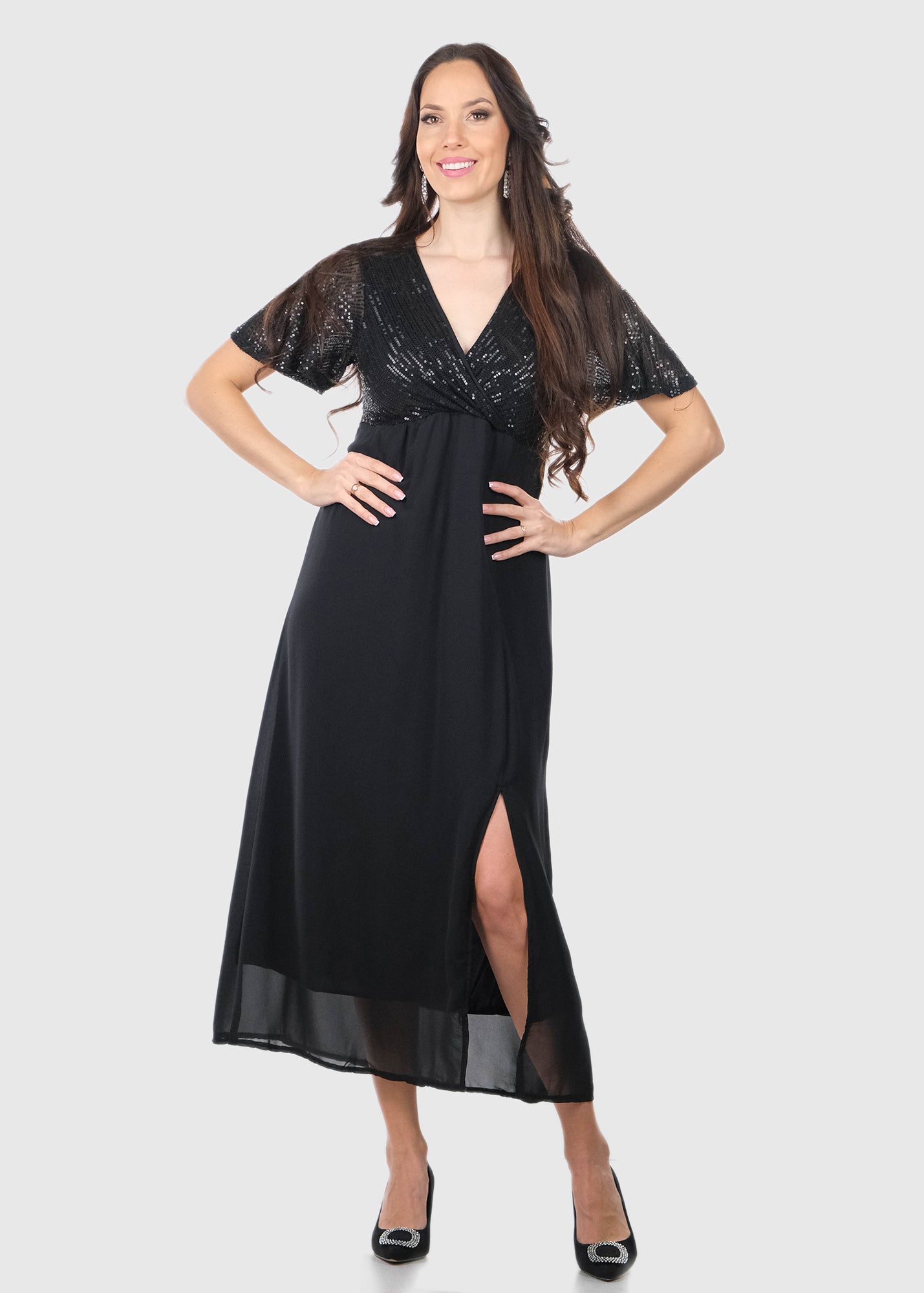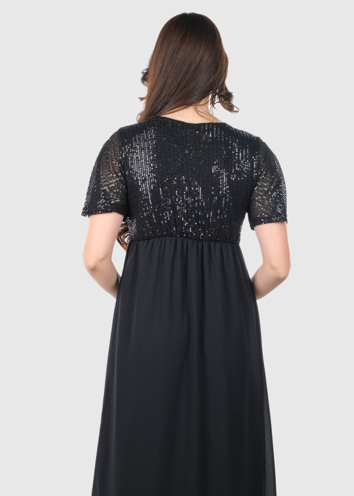 Chiara black long evening dress with rhinestones