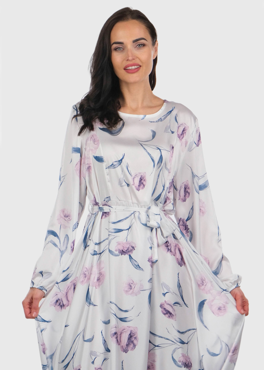Dae white long floral printed evening dress