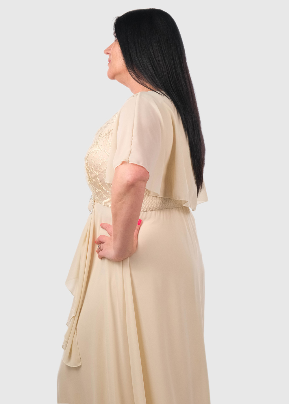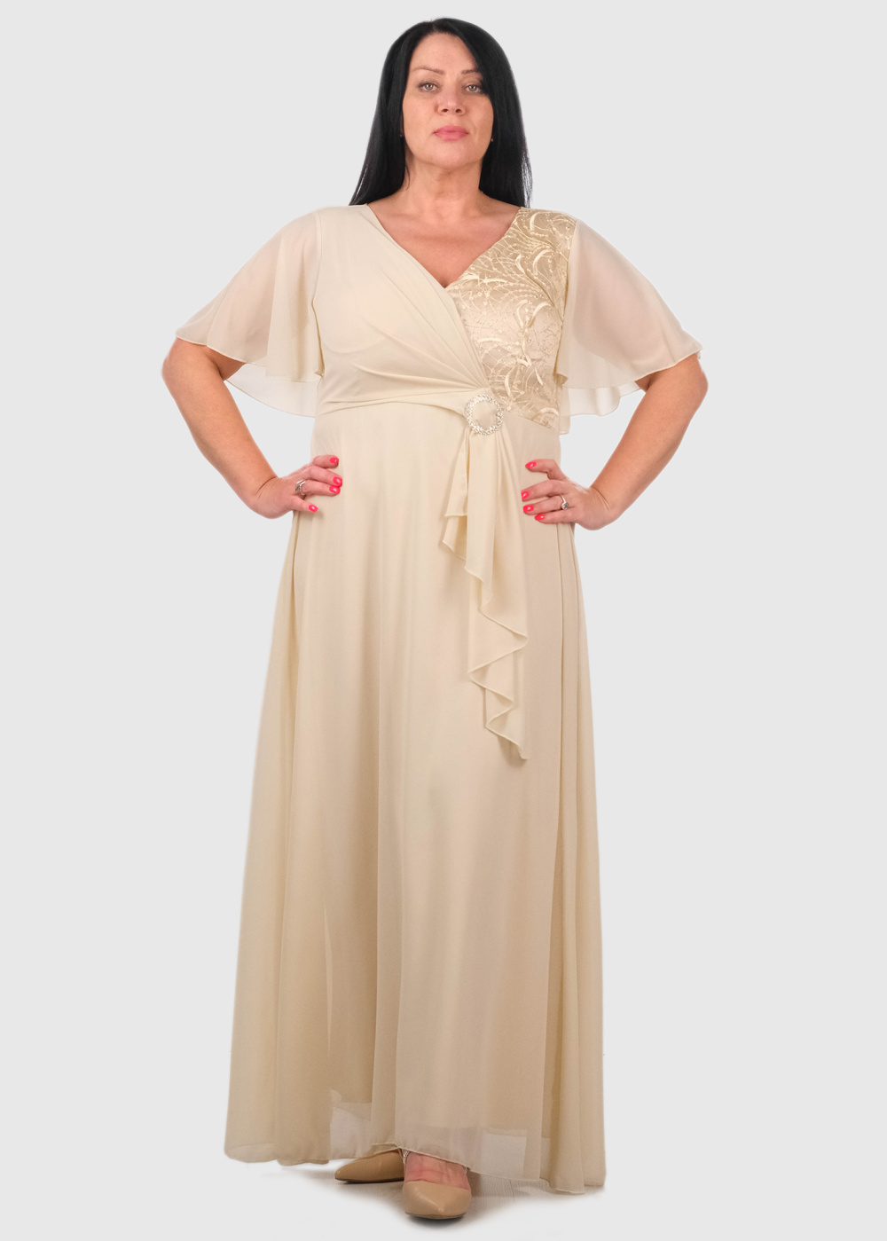 Hilary Plus Size beige long evening dress