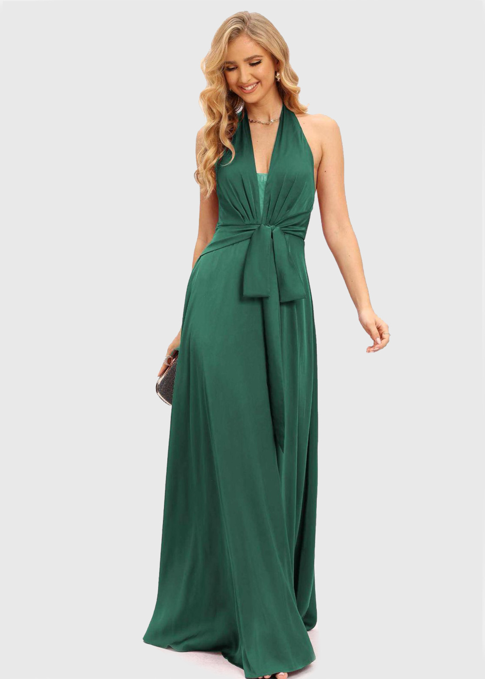 Imana green long open back evening dress