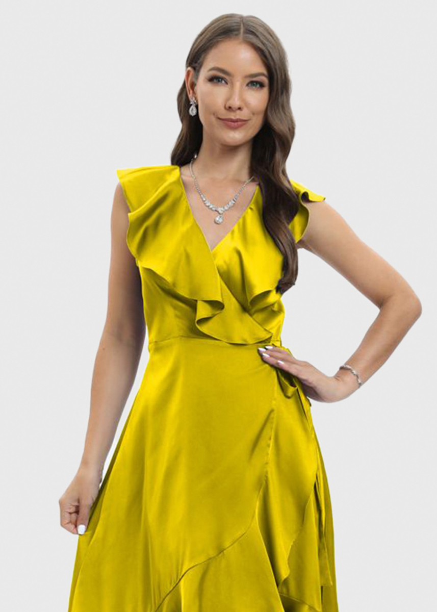 Inna yellow evening dress with frill details