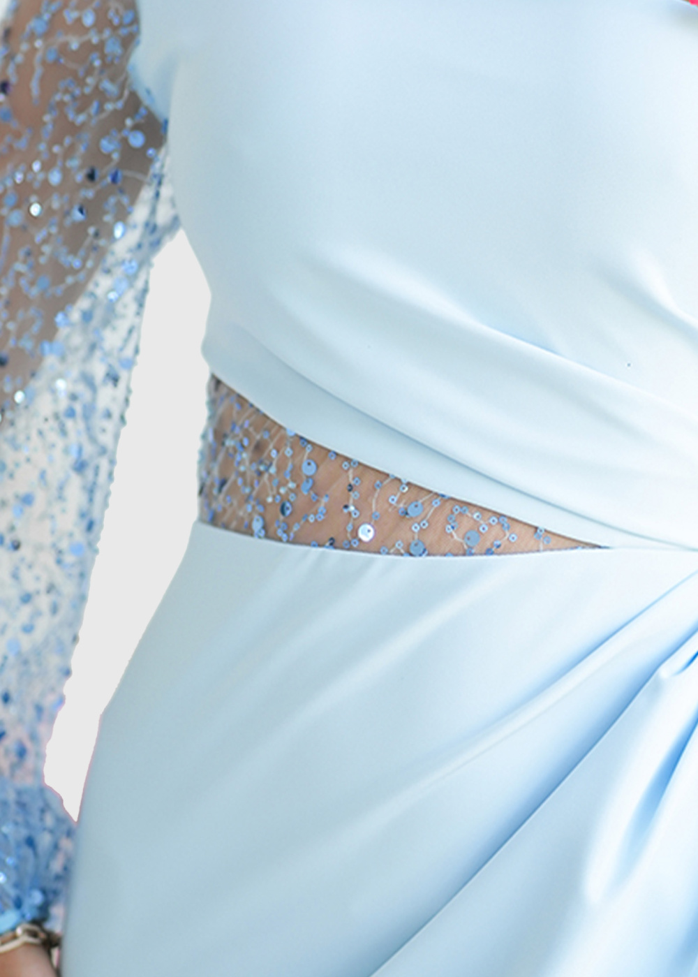 Tetsu light blue long one shoulder evening dress
