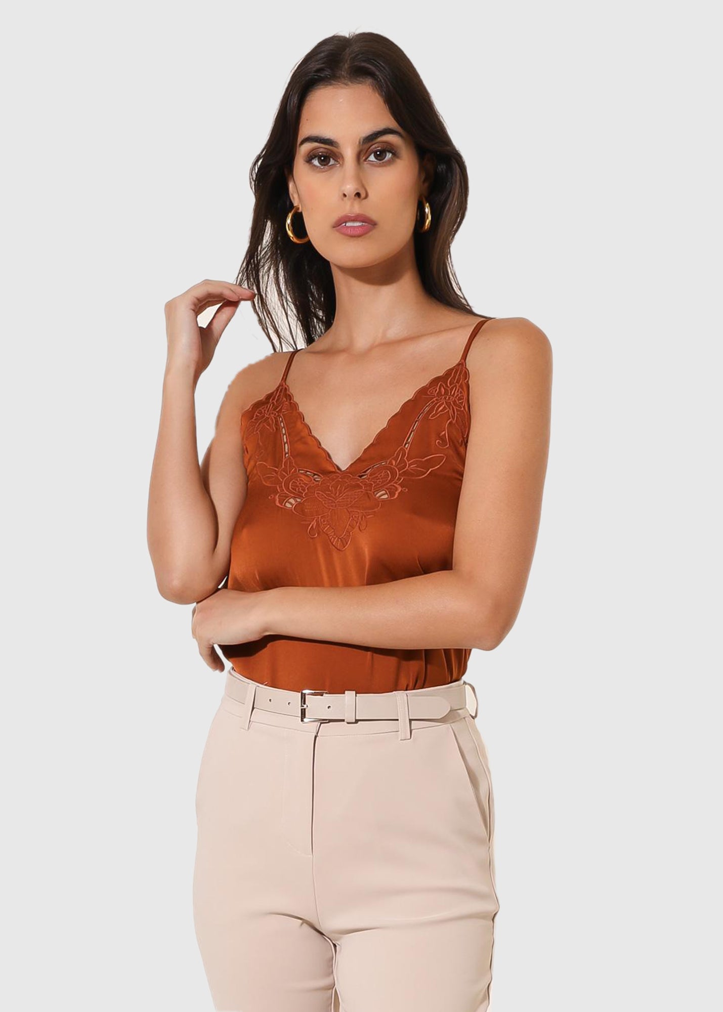 Crocifissa orange thin shoulder straps top