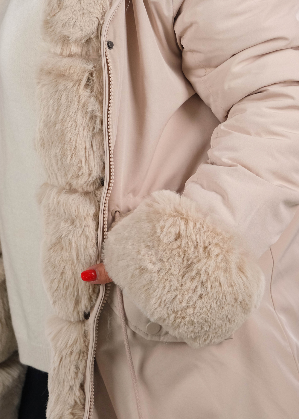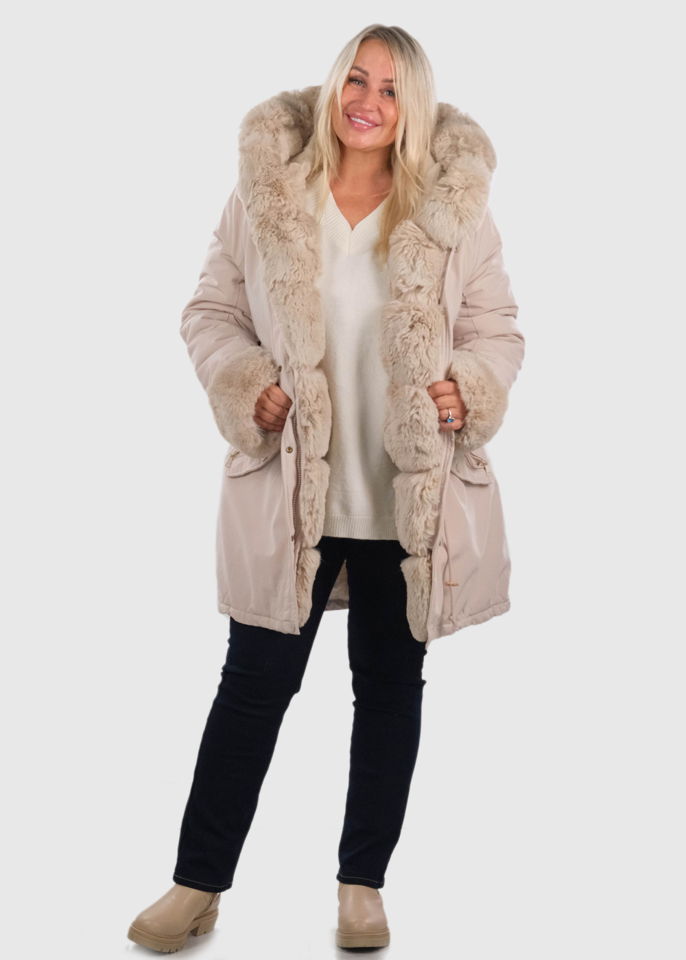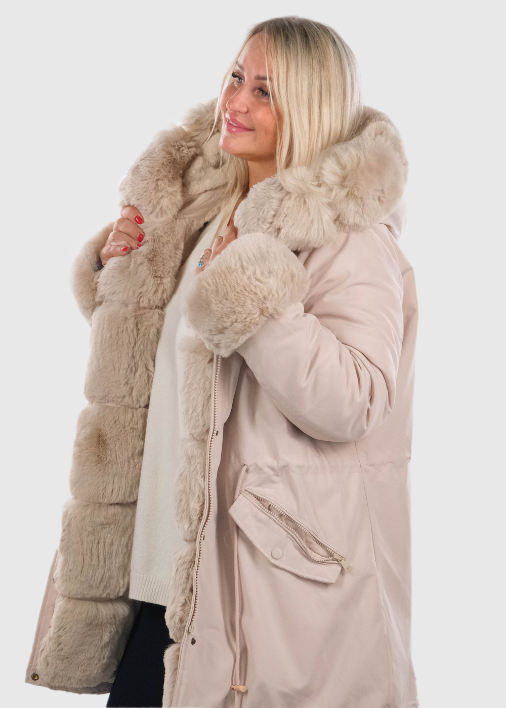 Ilaya Plus Size beige fur inserts jacket