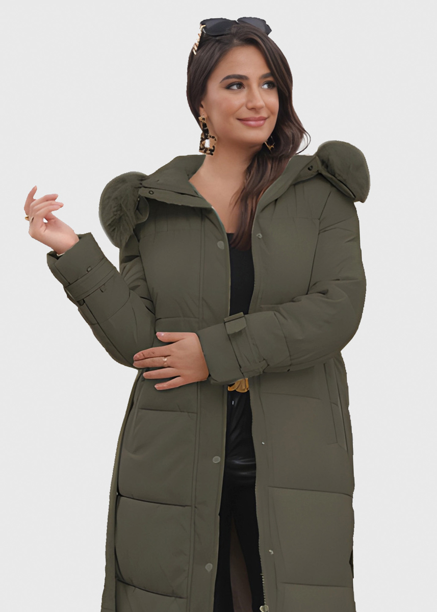 Daniela Plus Size khaki long jacket with hood Daniela Plus Size khaki long jacket with hood - back Daniela Plus Size khaki long jacket with hood