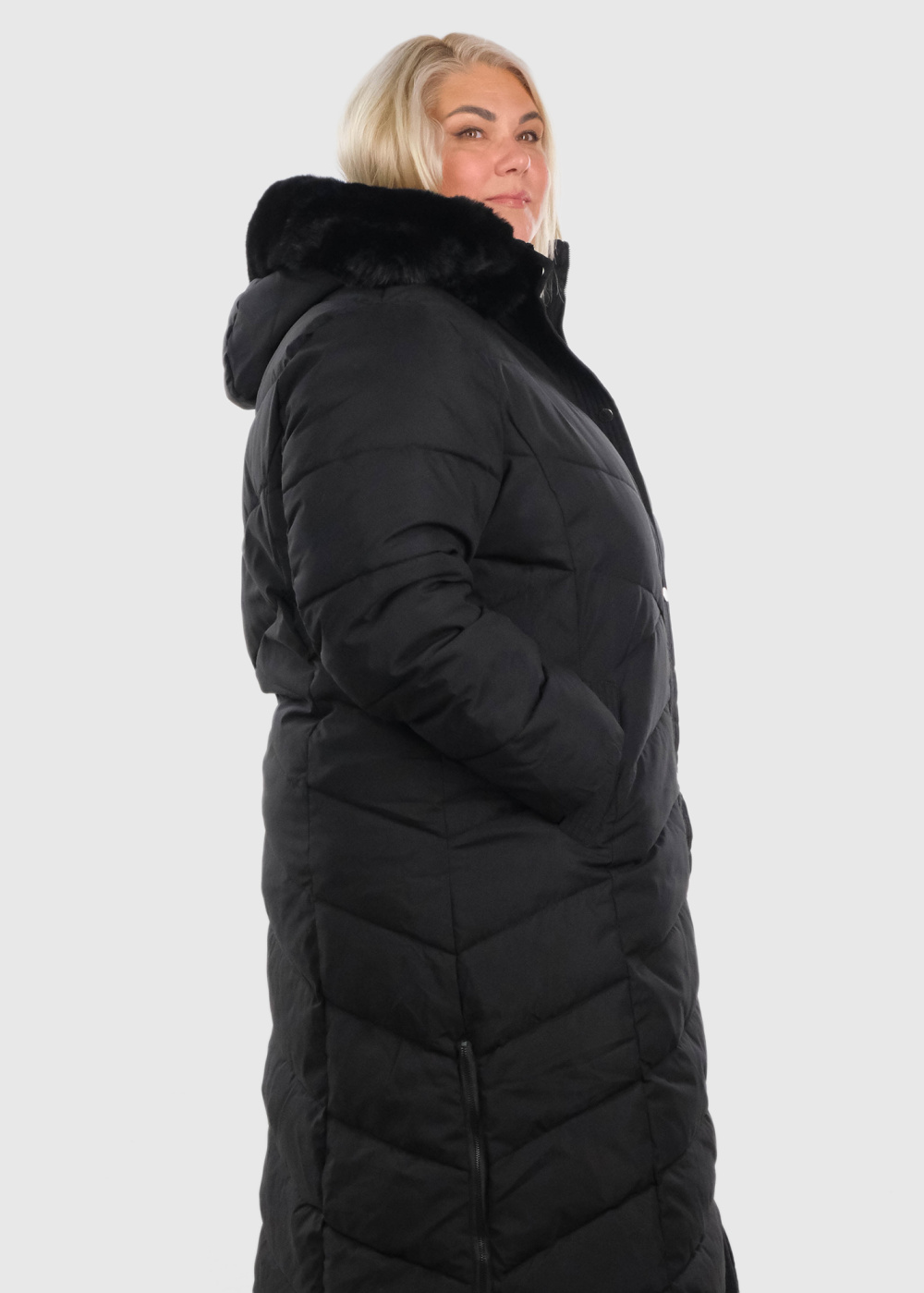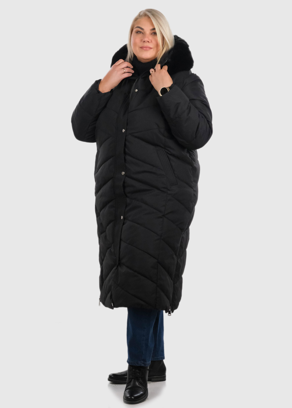 The model presents the product in size: 56(7XL)