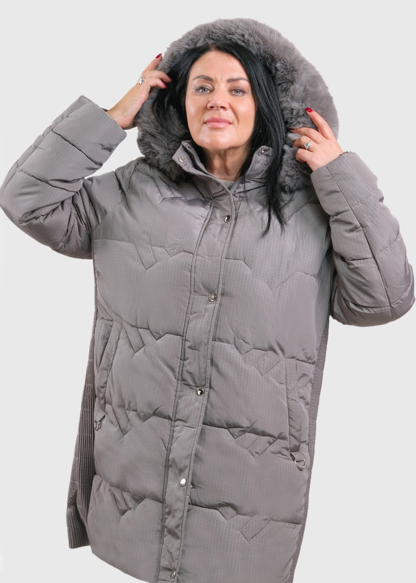 Daniela Plus Size khaki long jacket with hood Daniela Plus Size khaki long jacket with hood - back Daniela Plus Size khaki long jacket with hood