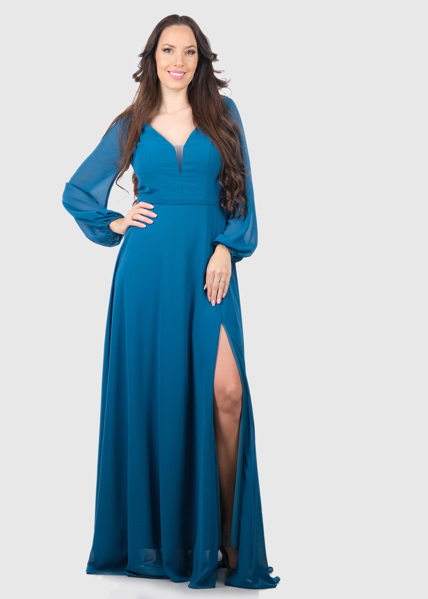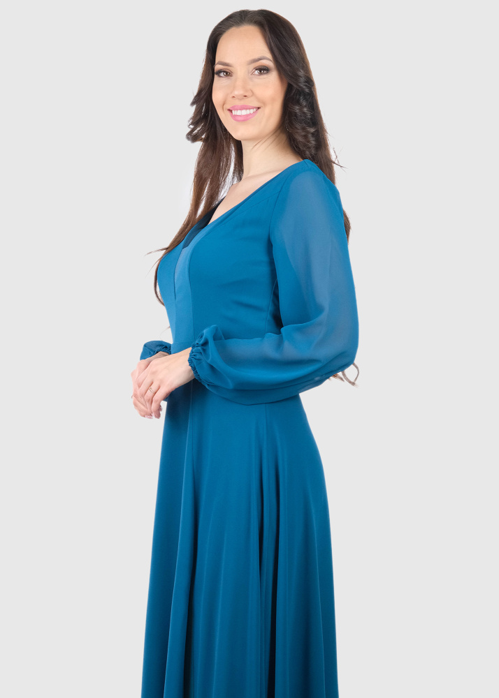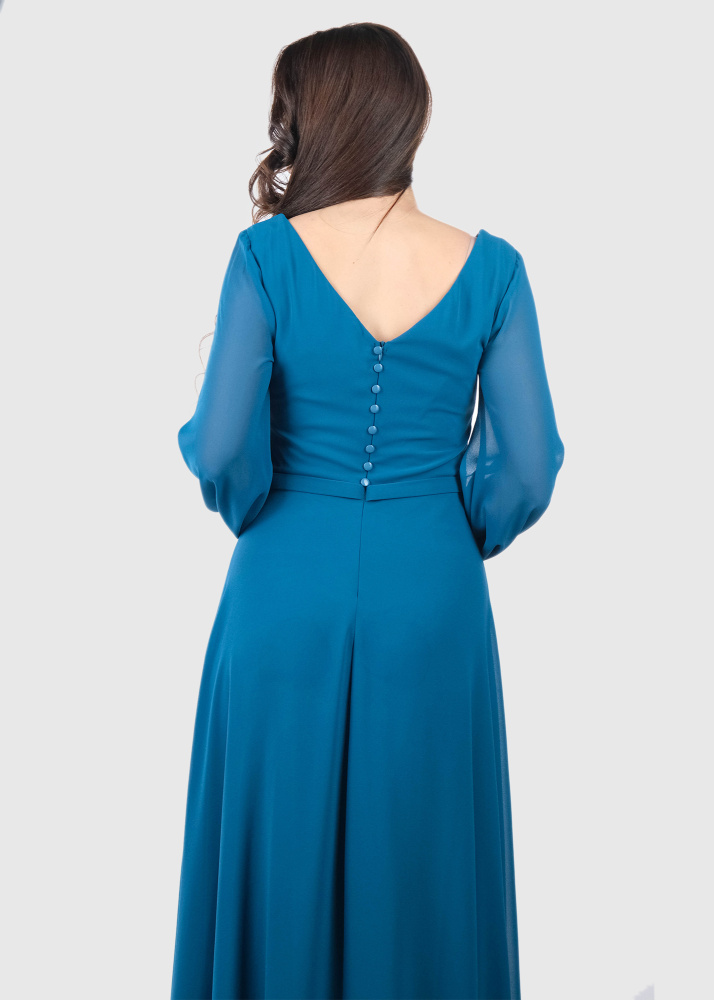 Carlotta blue long sleeve evening dress