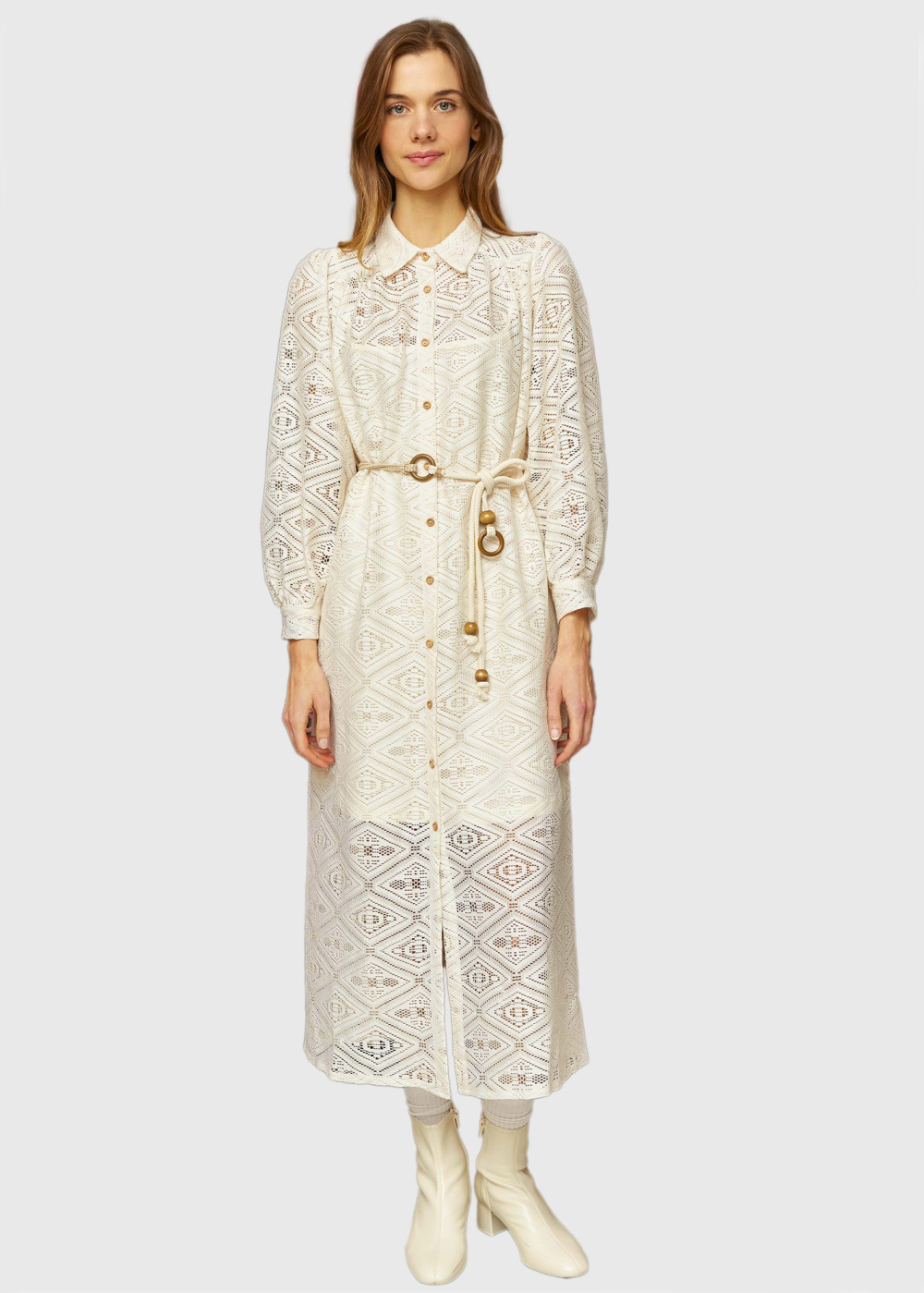 Doina beige belted dress Doina beige belted dress - back Doina beige belted dress