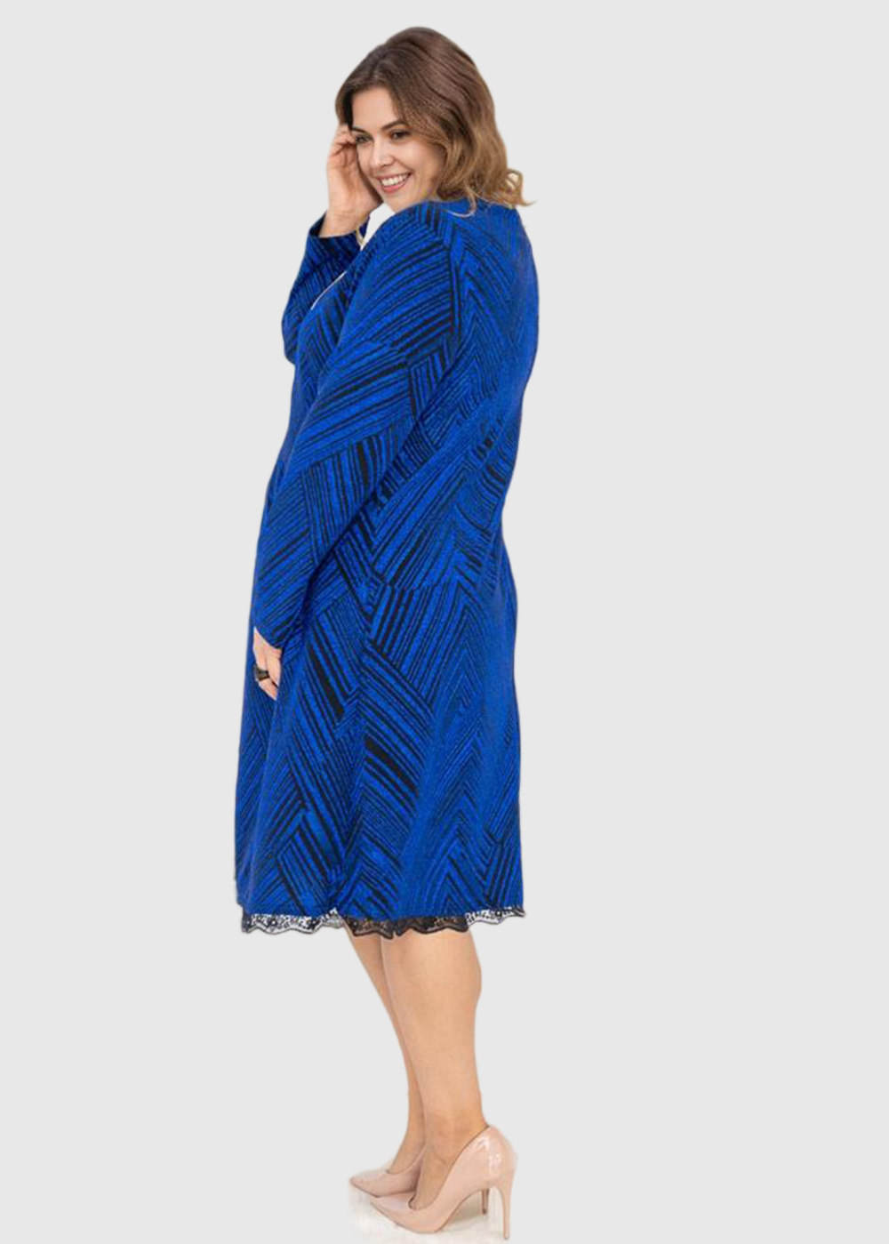 Zevide Plus Size blue long sleeve evening dress