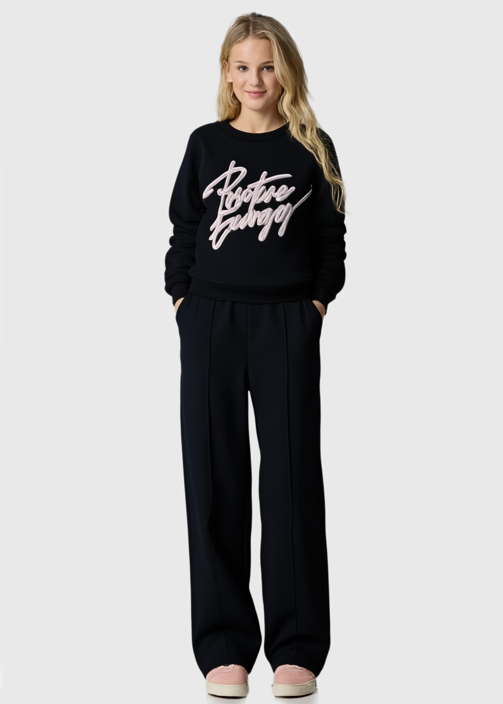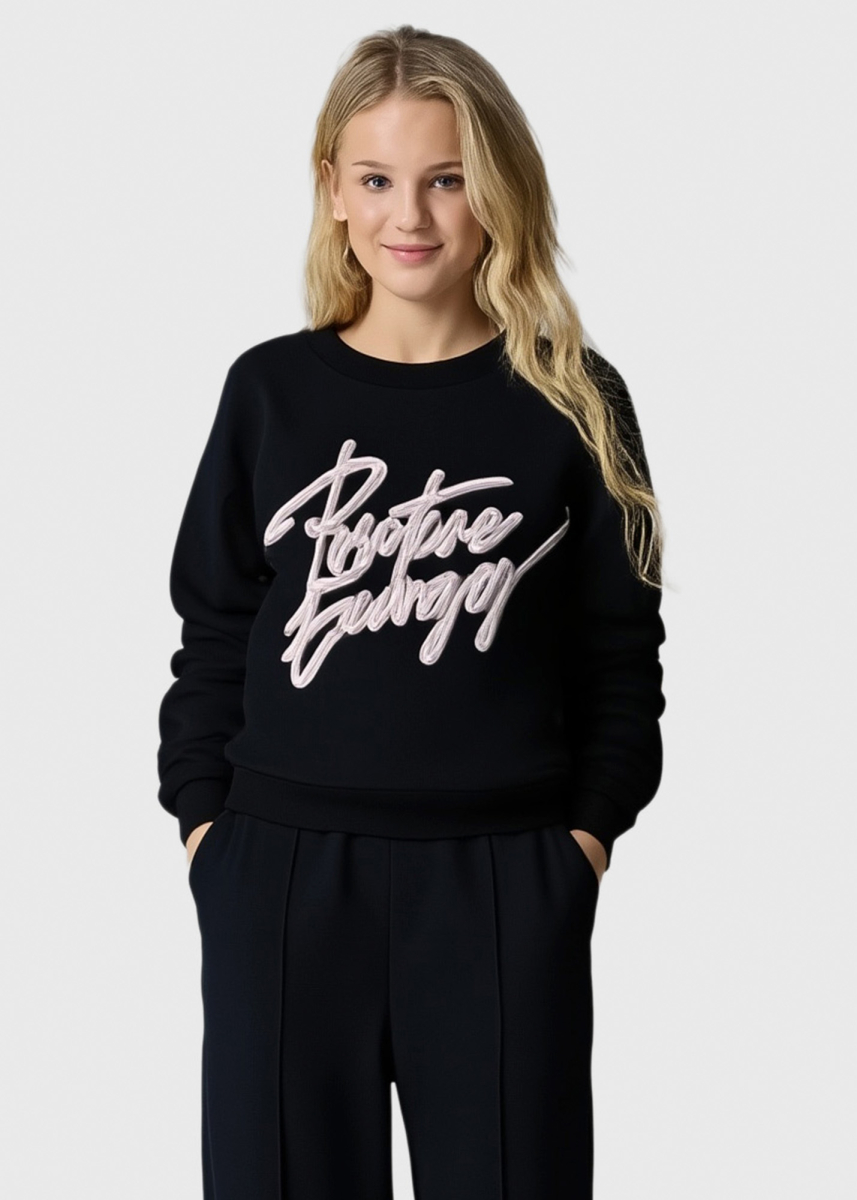 Selcan black sportswear with a sign