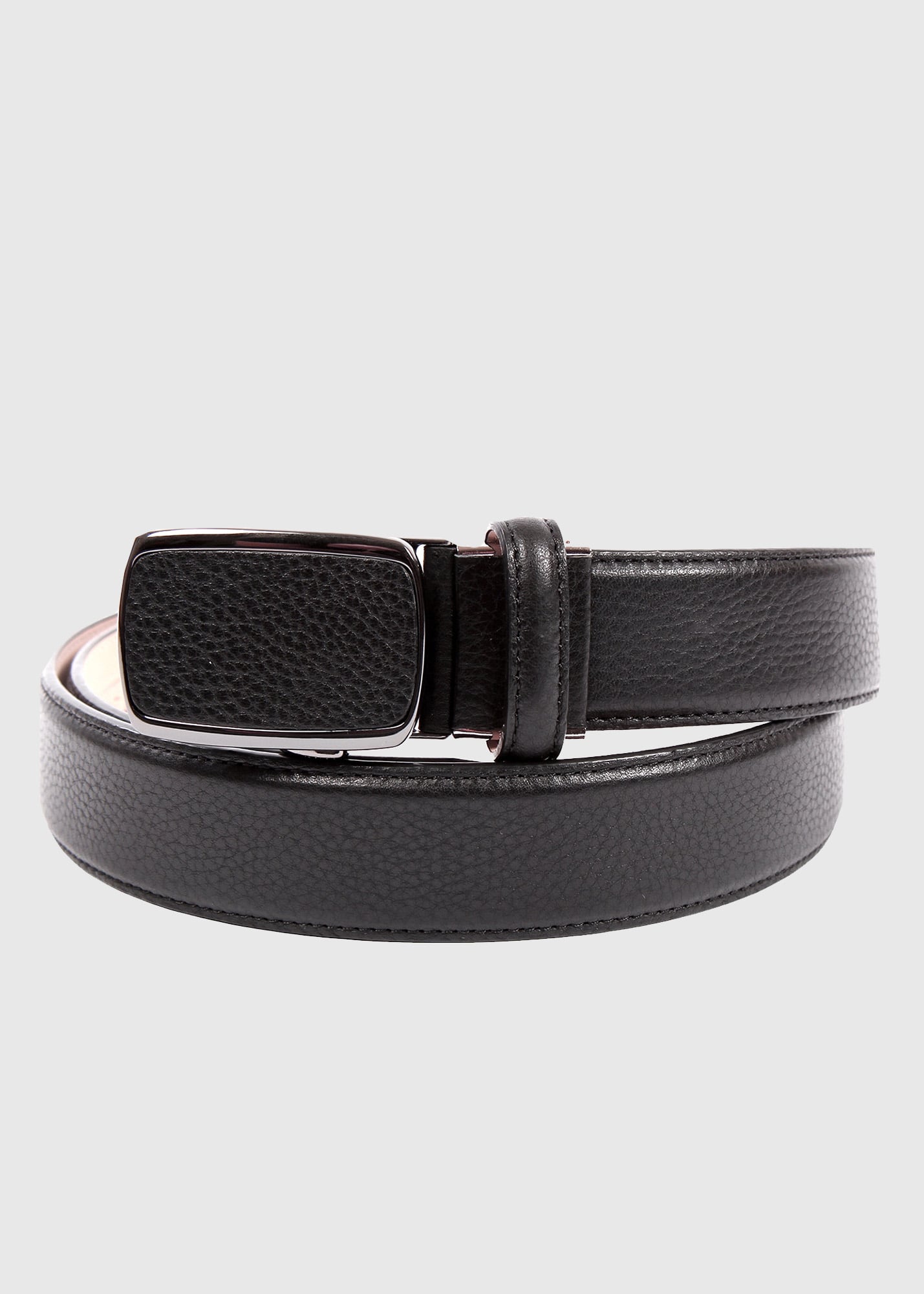 Nilay black men's belt with metal buckle Nilay black men's belt with metal buckle - back Nilay black men's belt with metal buckle