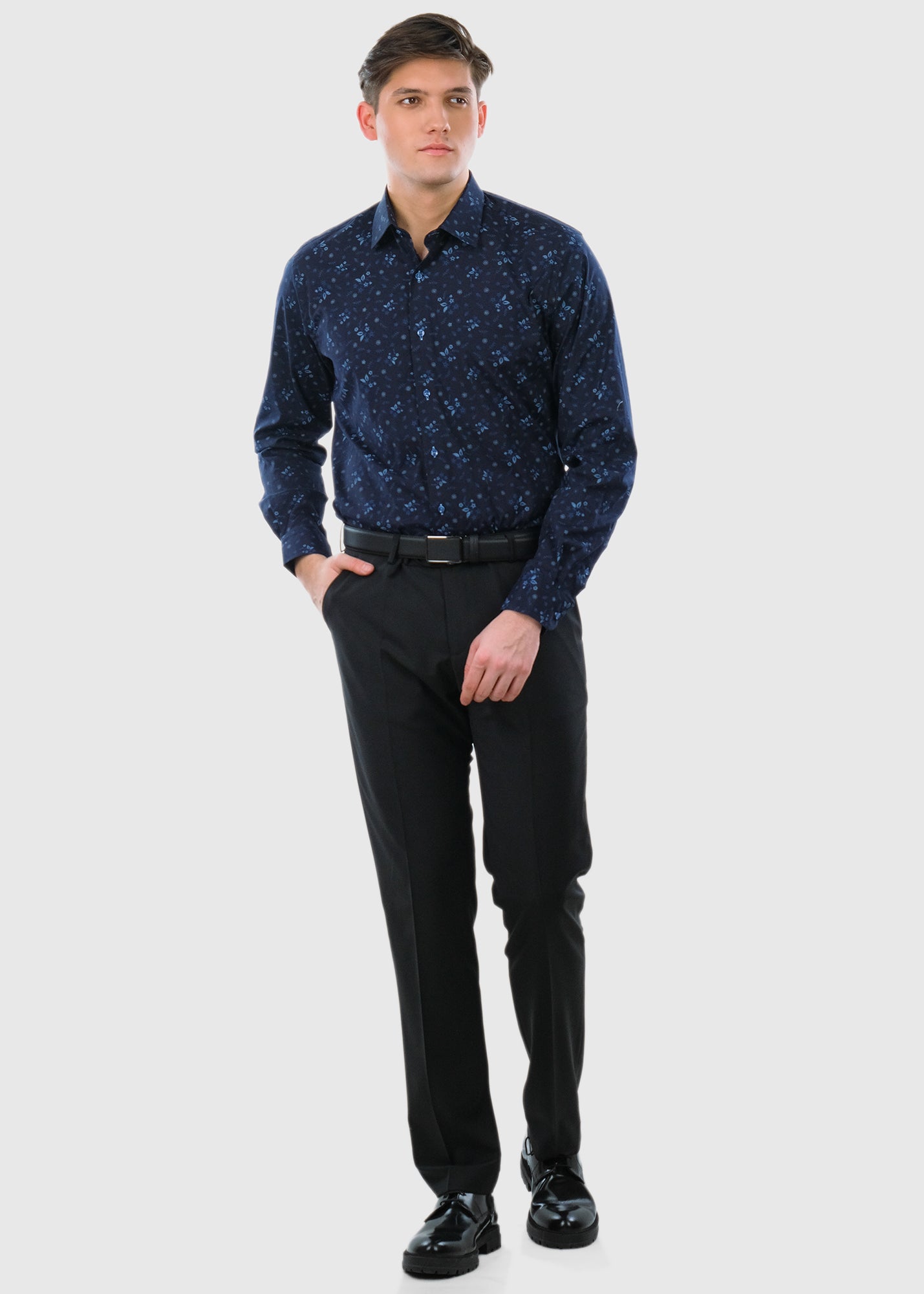 Slim Fit dark blue men's shirt with pattern