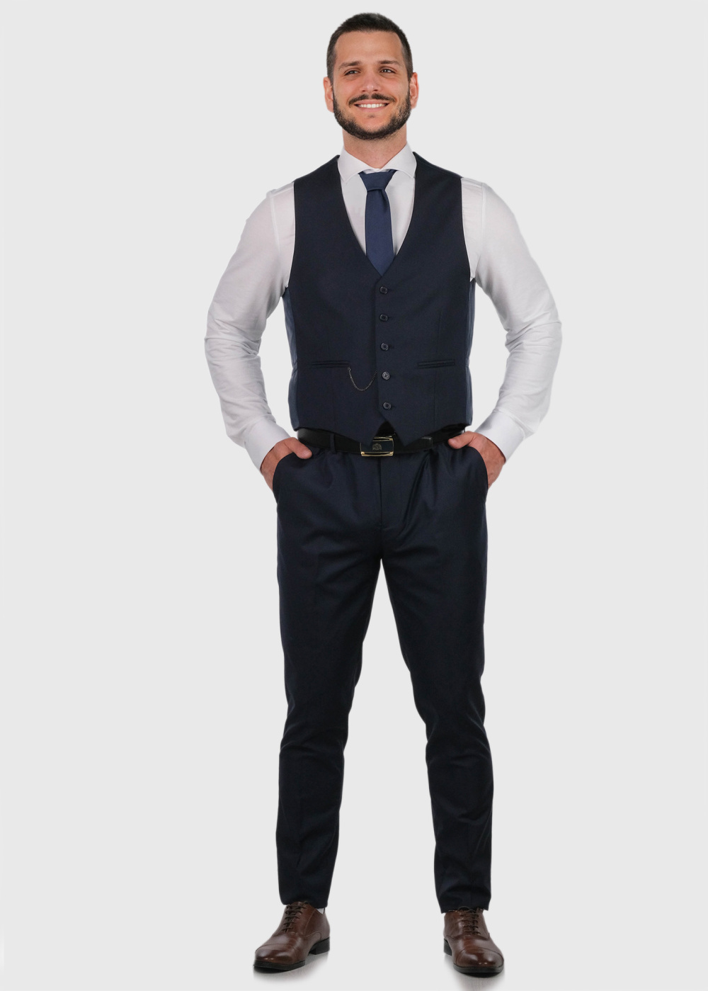 Grell dark blue classic vest with chain