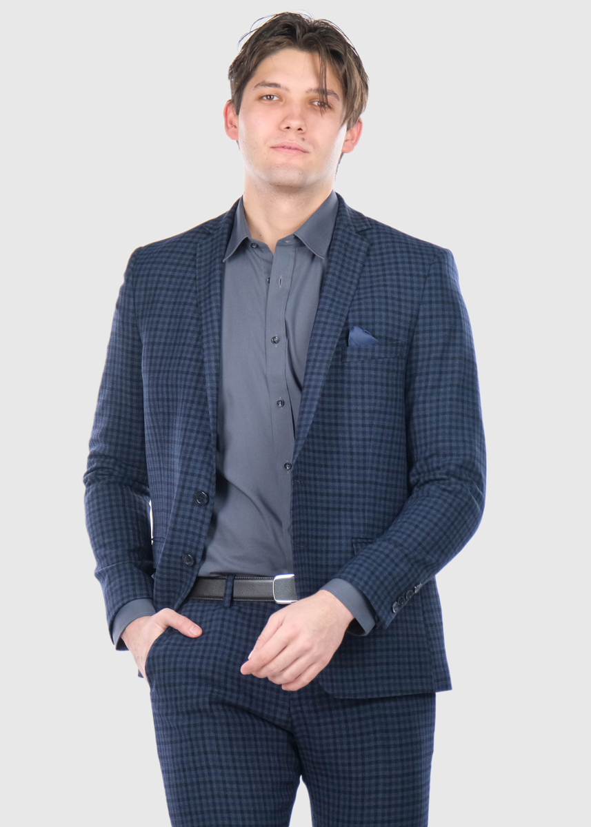Bartoluccio Slim Fit blue woolen checkered suit
