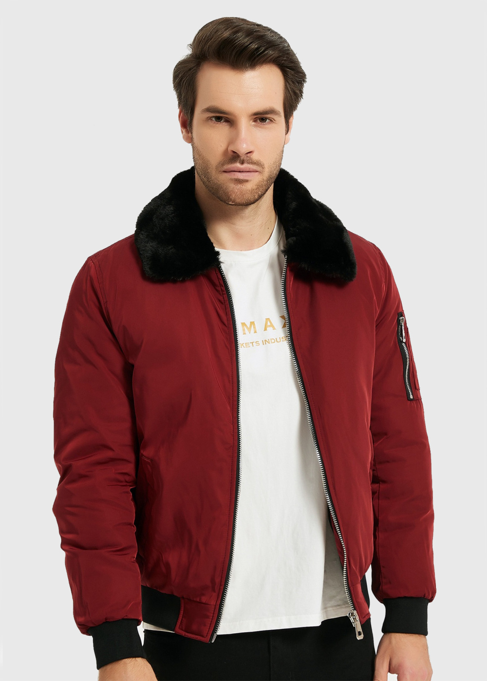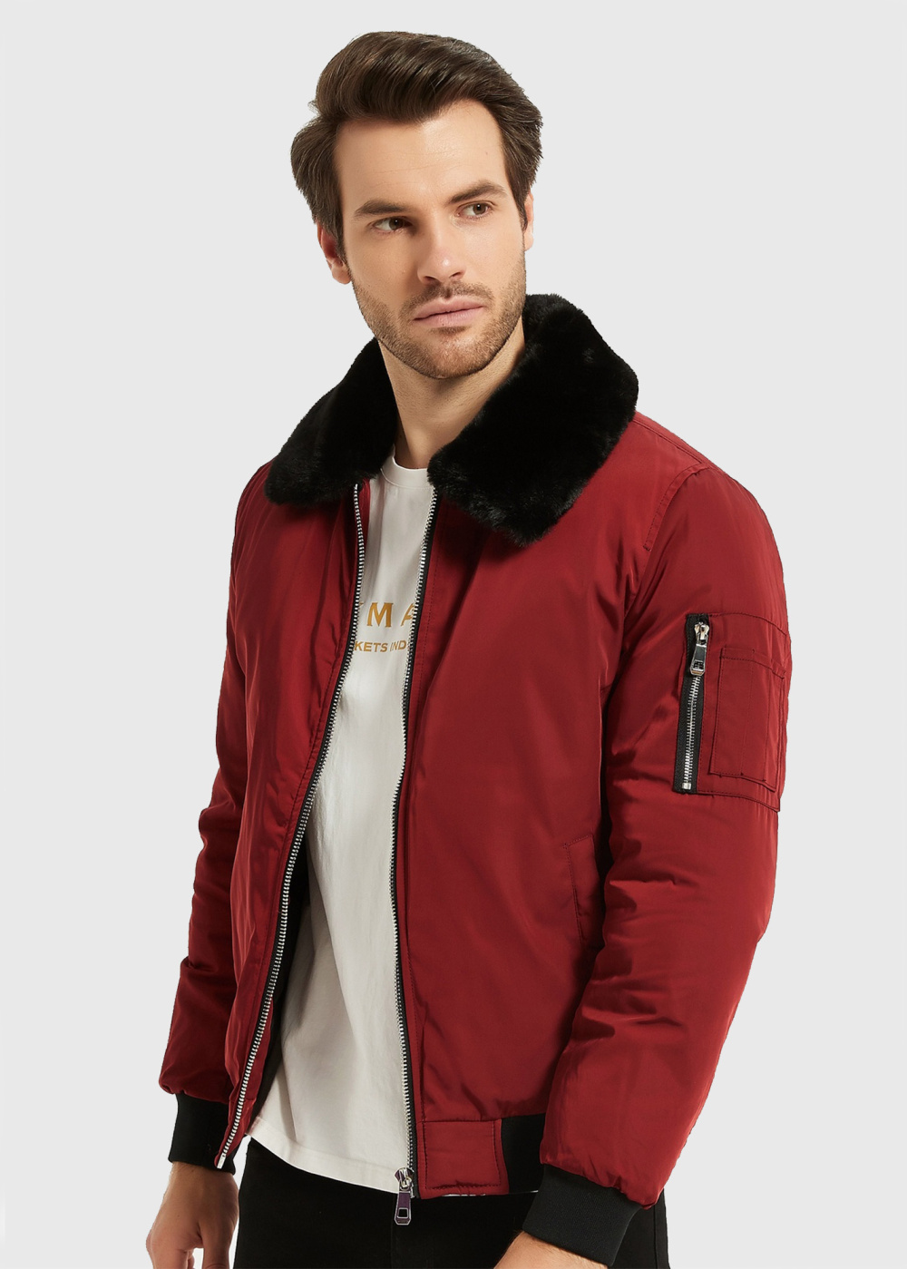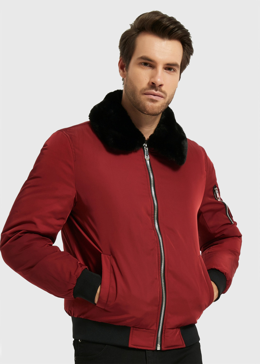 Black mens coat with faux fur Black mens coat with faux fur - back Black mens coat with faux fur