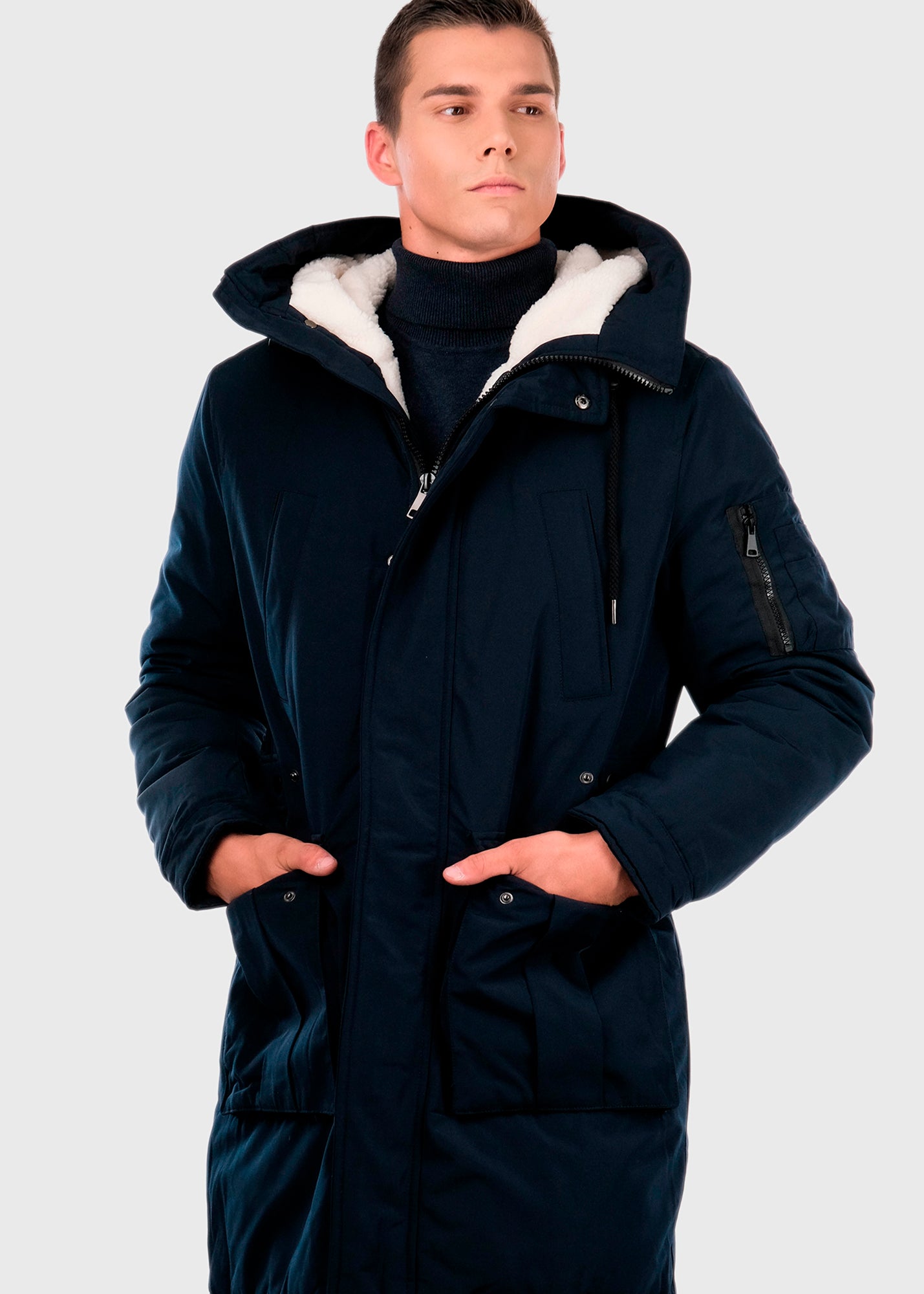 Black mens coat with faux fur Black mens coat with faux fur - back Black mens coat with faux fur