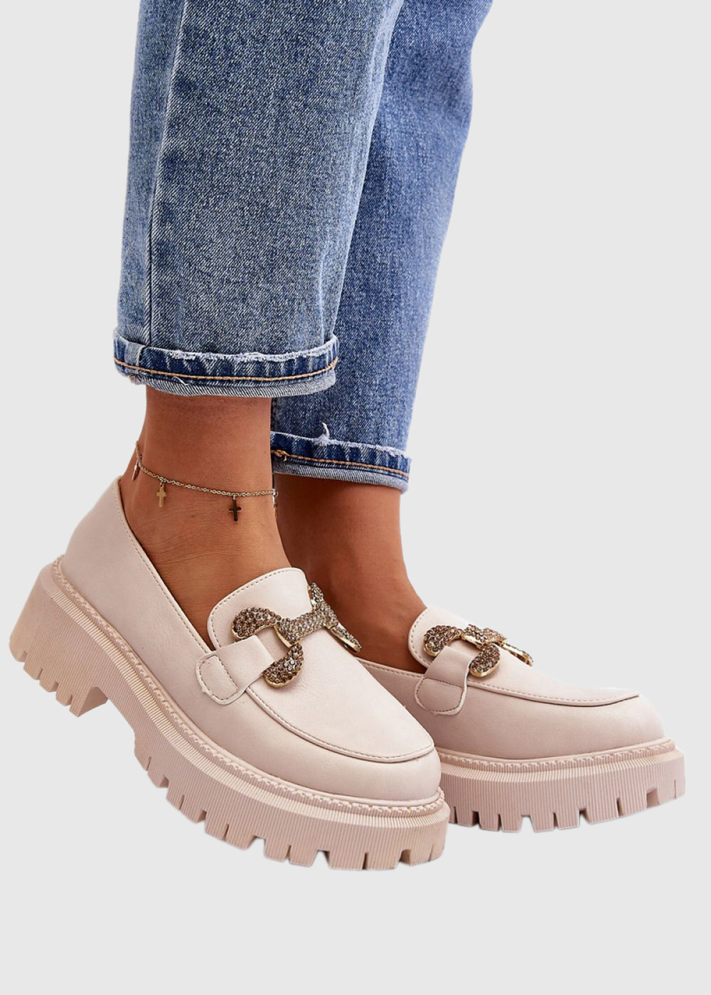Belén светло-бежевые лоферы с металлической пряжкой