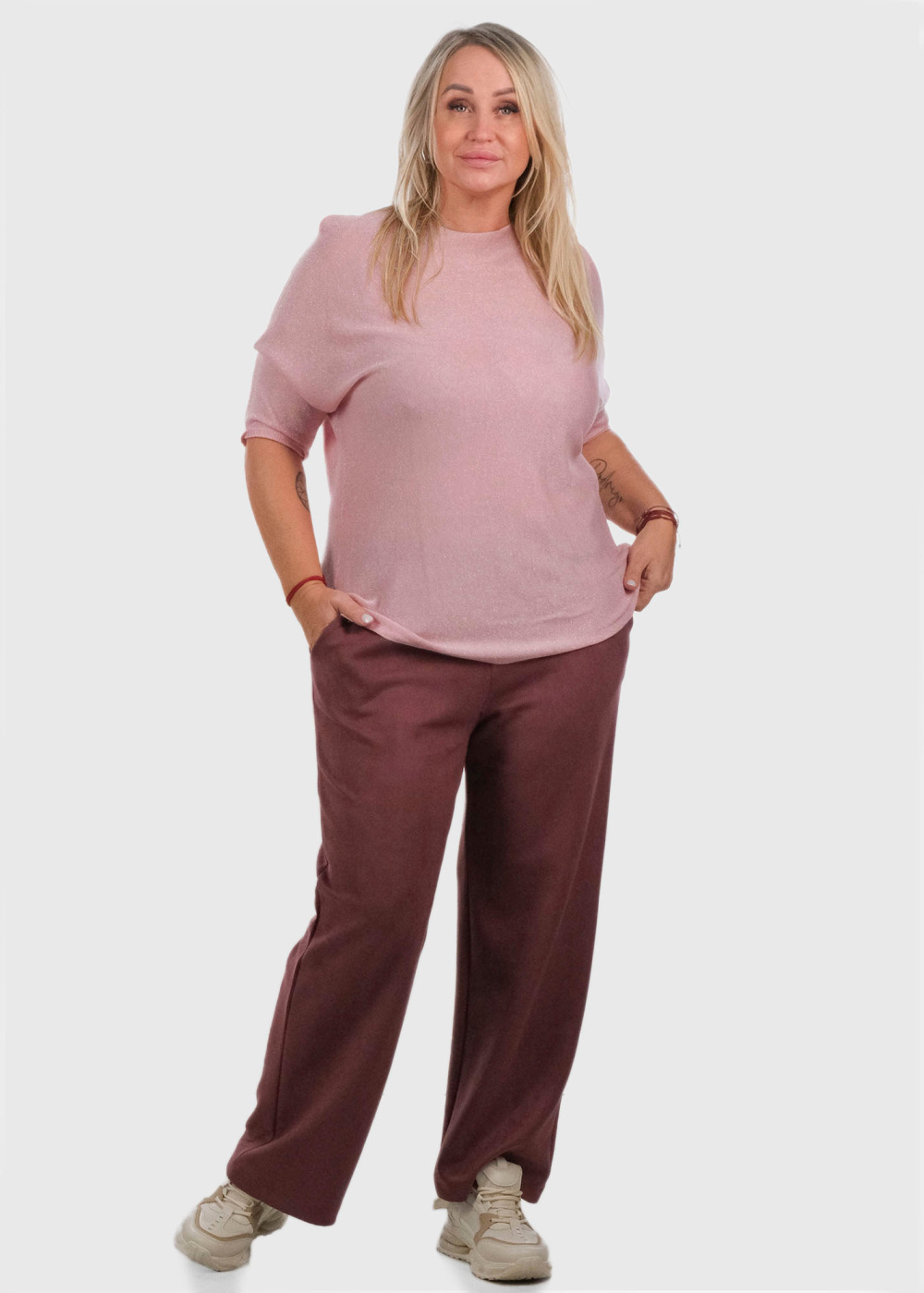 Lillie темно-розовые брюки Больших Размеров с завышенной талией