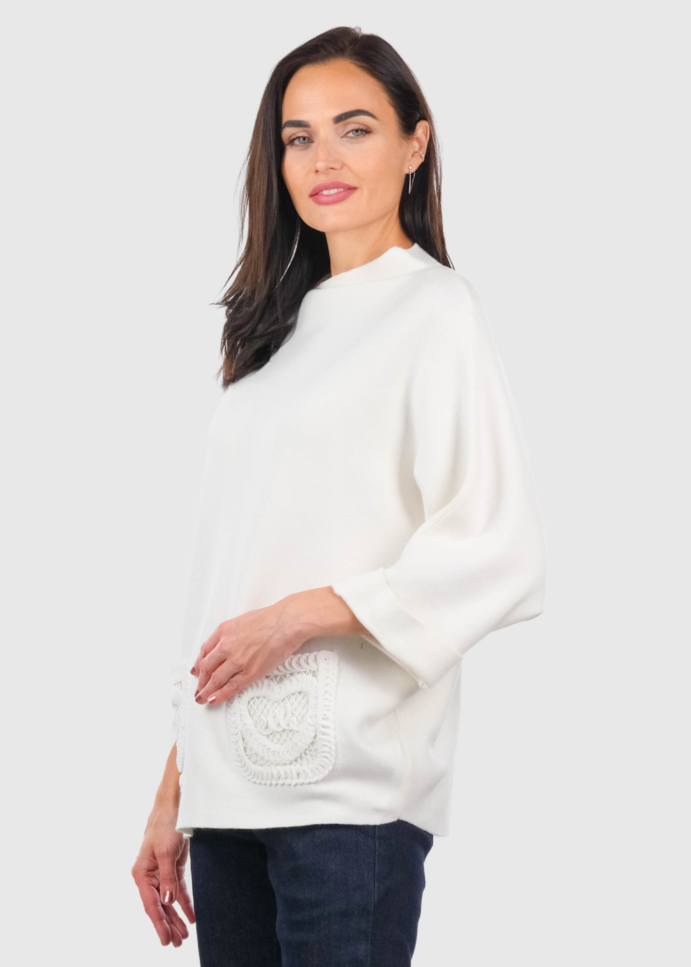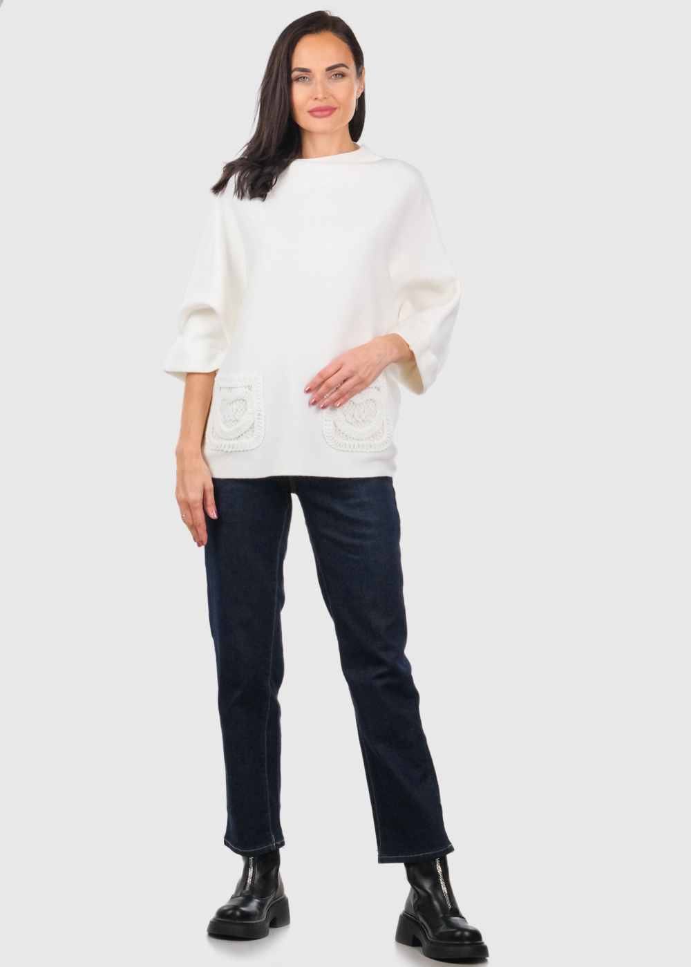 Lezina белый свитер с карманами