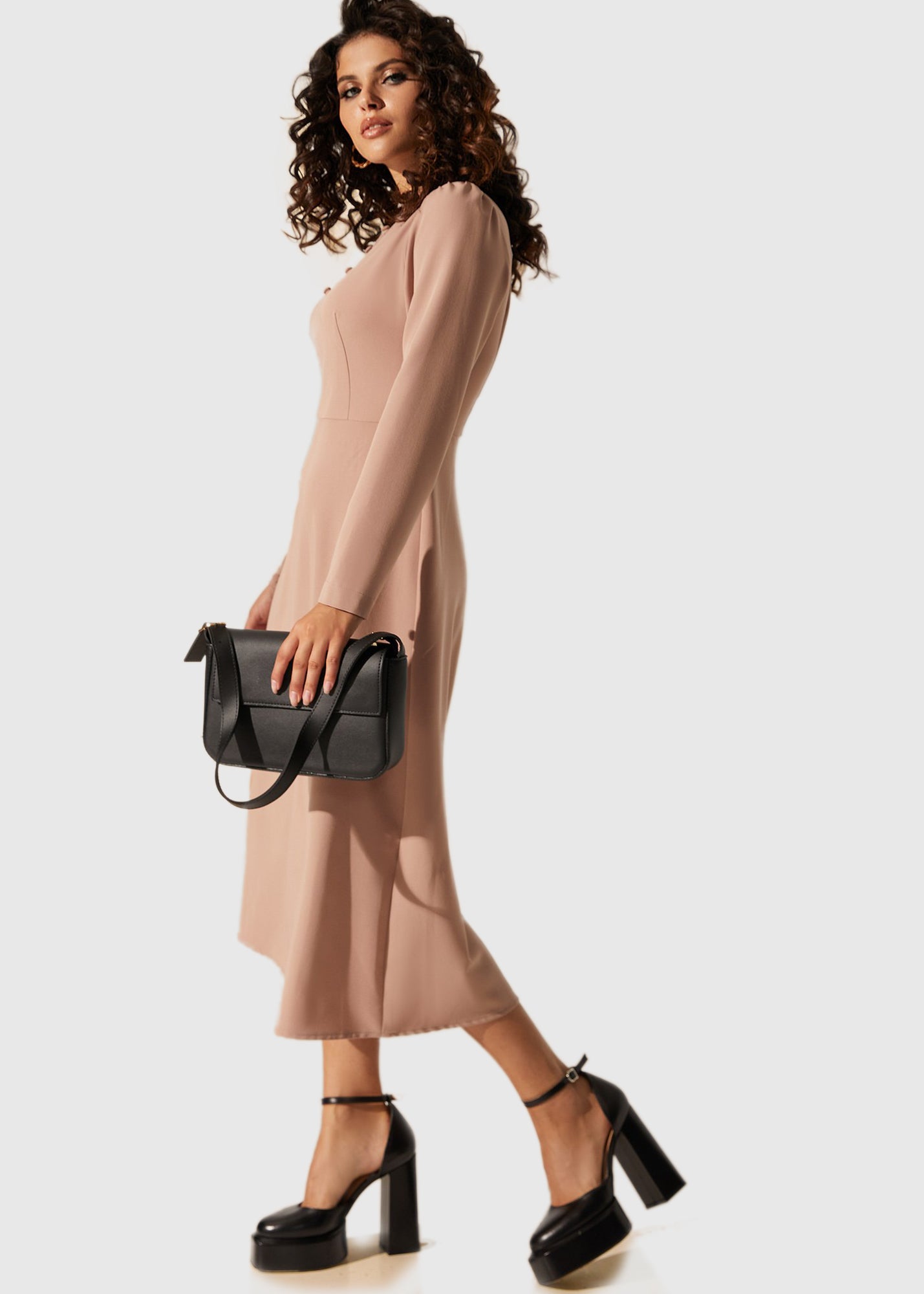 Бежевое платье с длинным рукавом