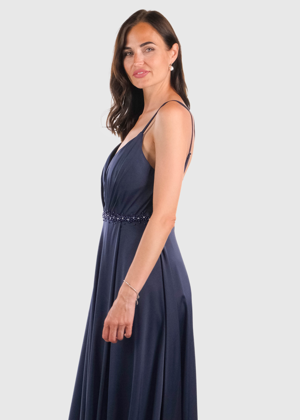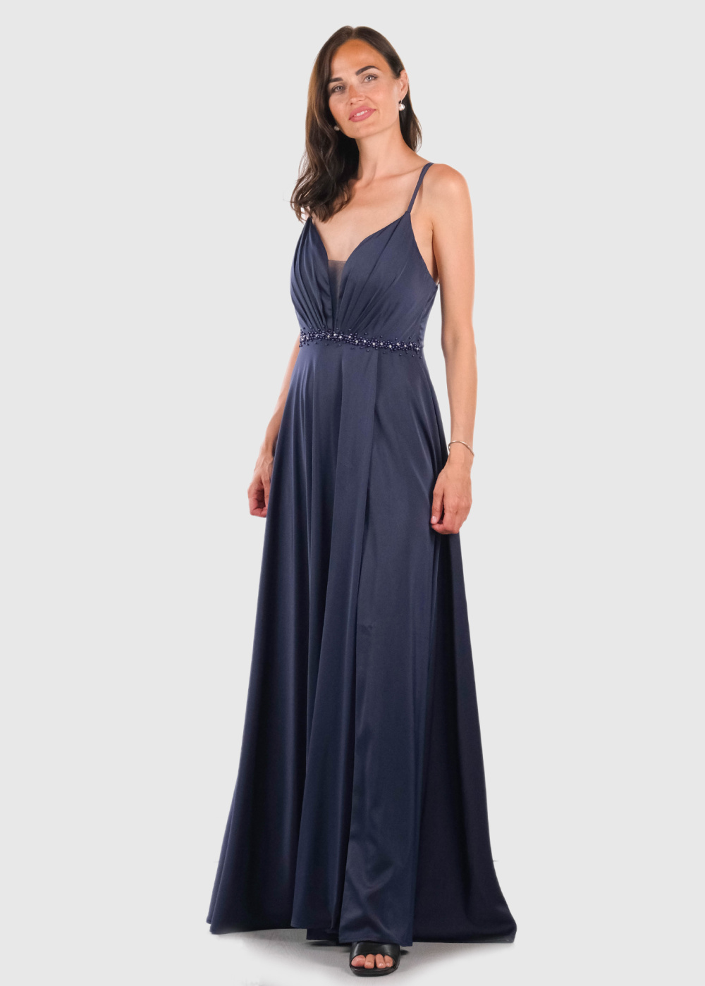 Brietta темно-синее длинное вечернее платье на тонких бретельках