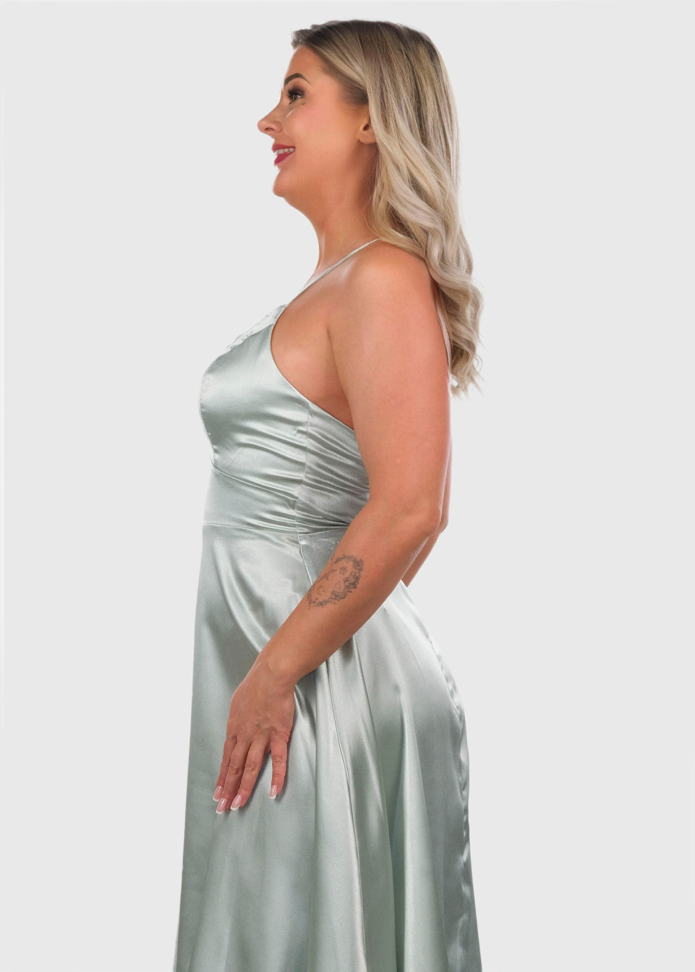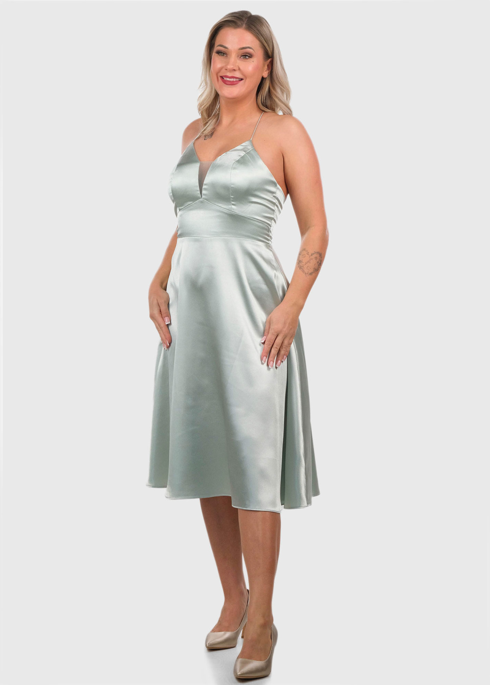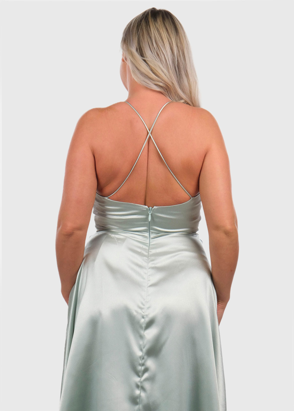 Courtney светло-зеленое вечернее платье с открытой спиной