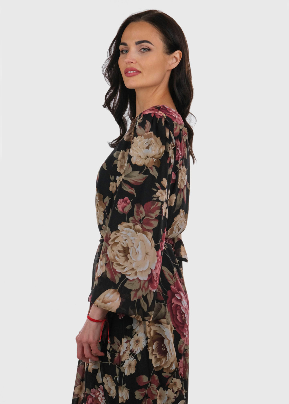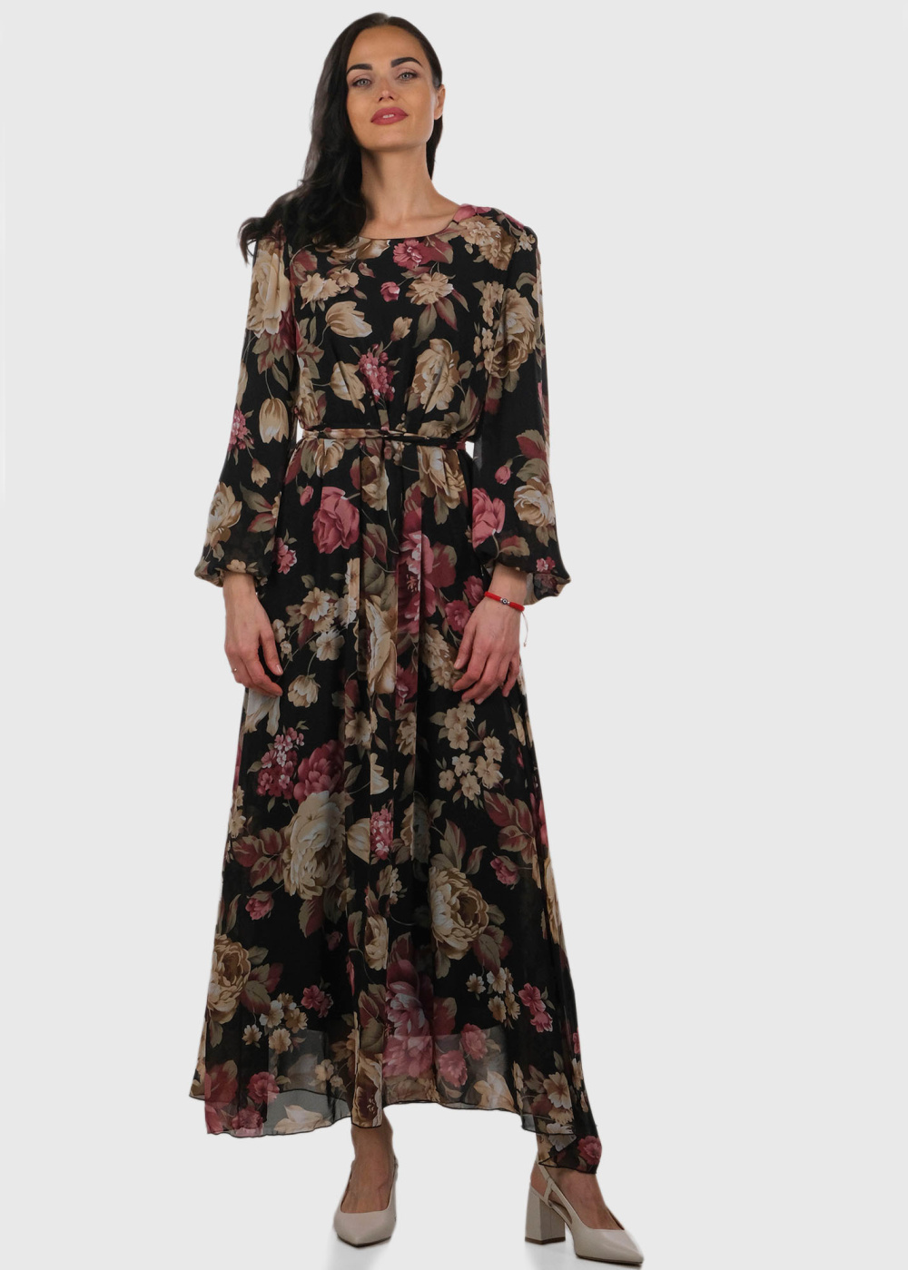 Devi черное длинное вечернее платье с принтом