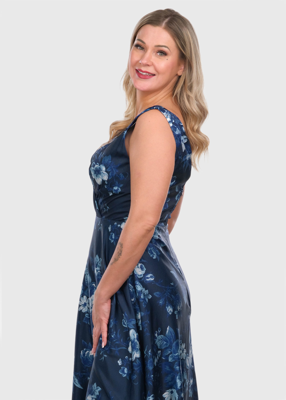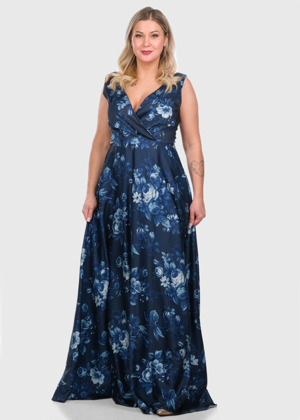Eliana темно-синее длинное вечернее платье с цветочным принтом