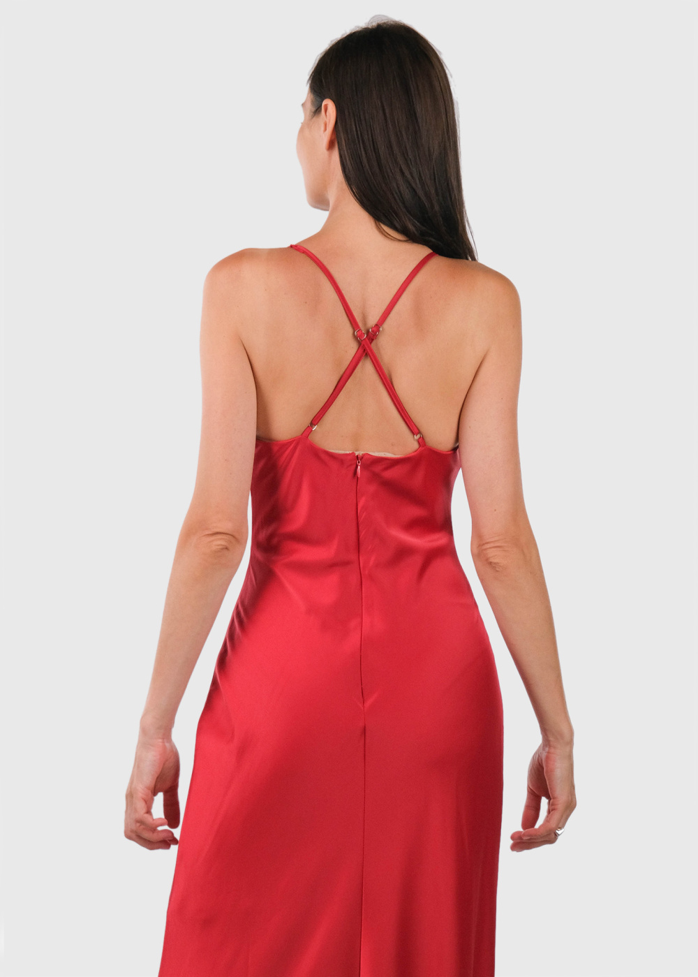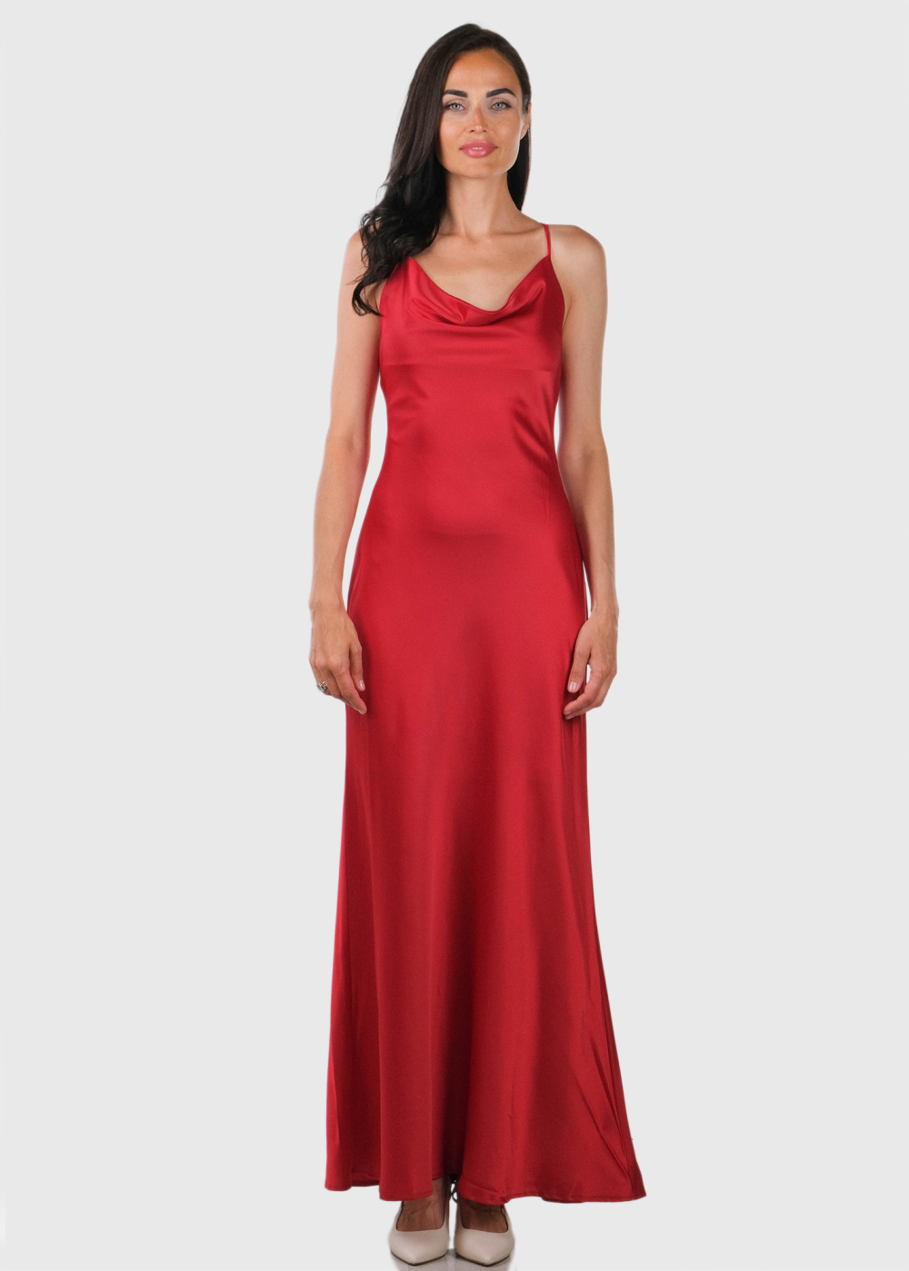 Elvina красное длинное вечернее платье на тонких брителях