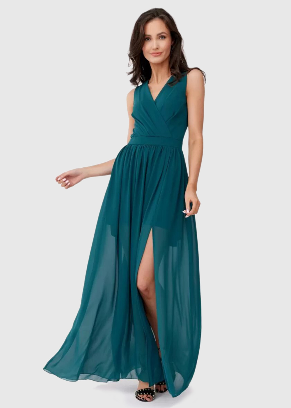 Kendra темно-зеленое длинное вечернее платье с V-образным вырезом