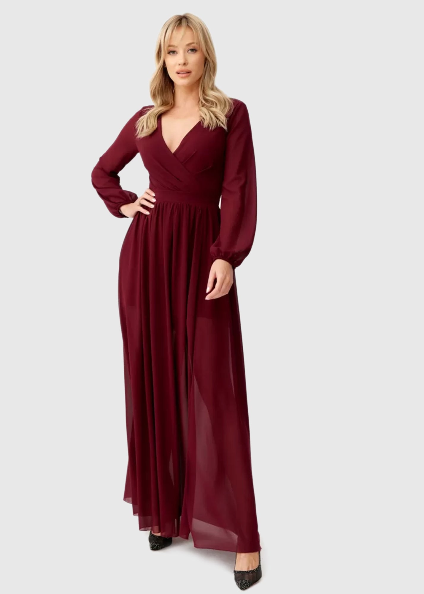 Nicolina бордовое длинное вечернее платье