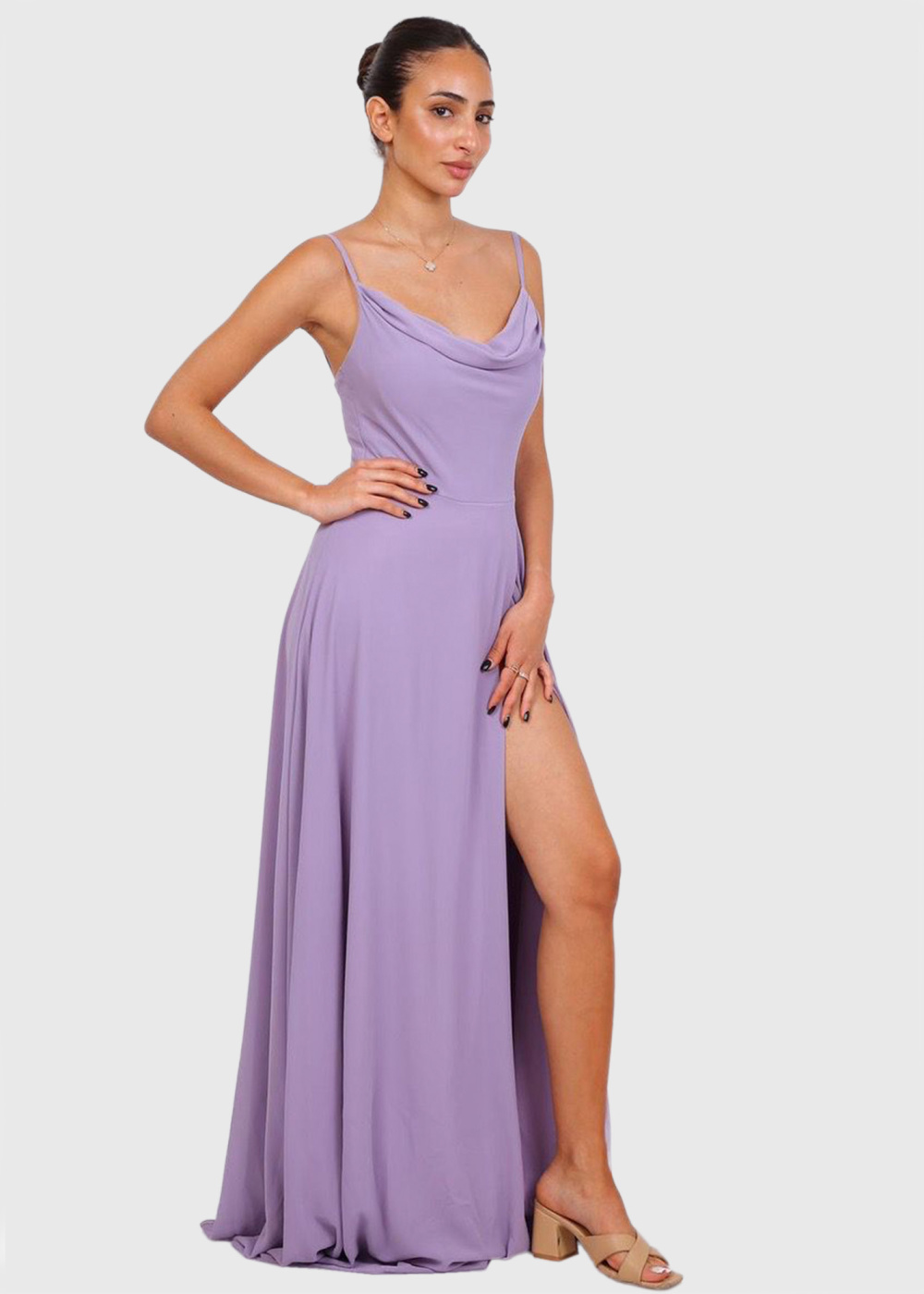 Tristessa фиолетовое вечернее платье с разрезом