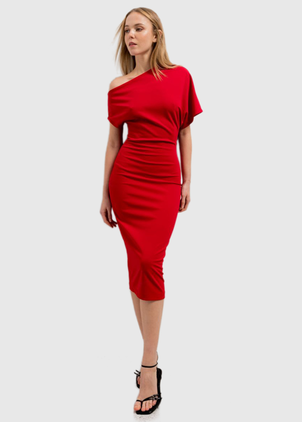 Красное облегающее платье