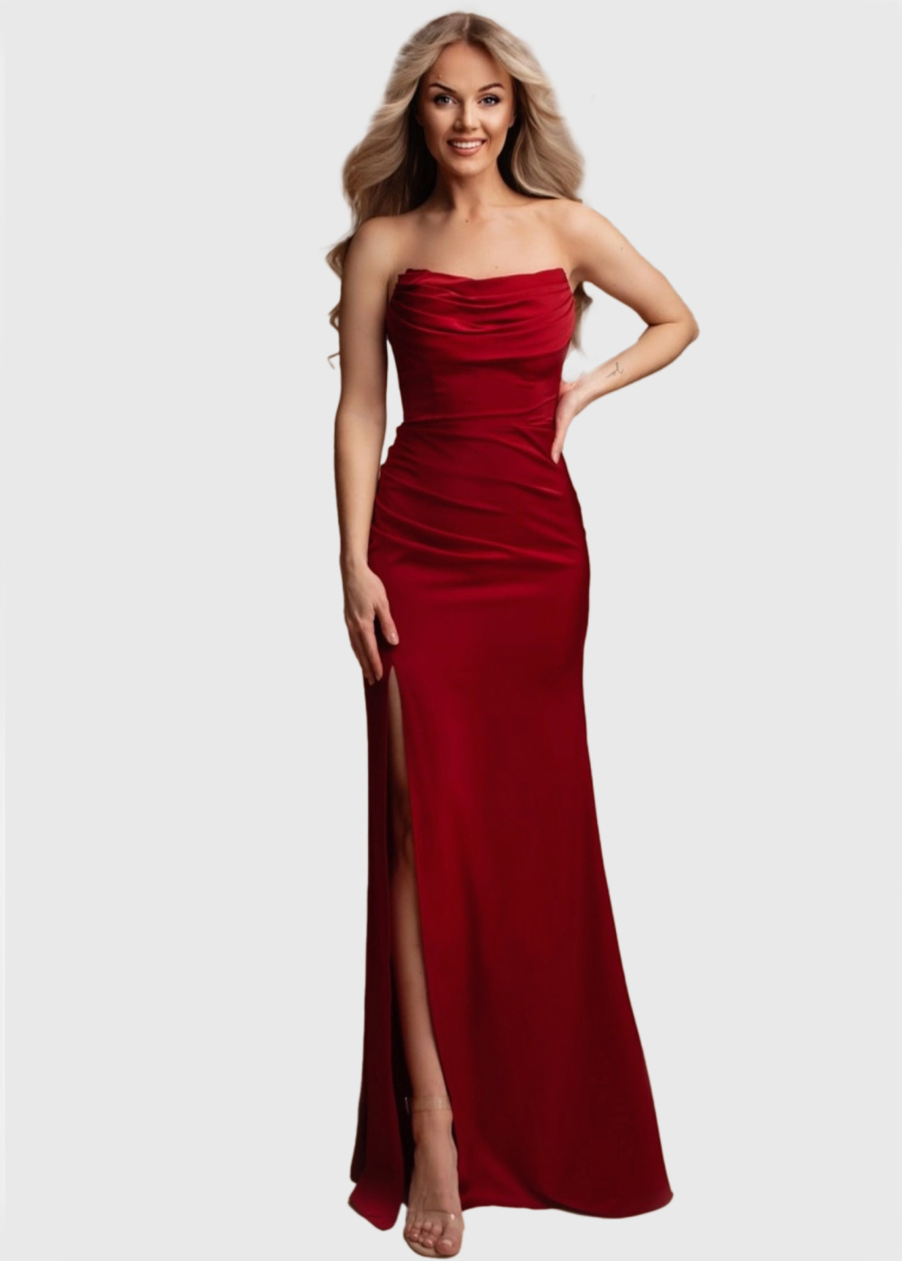Tulia красное длинное вечернее платье с открытыми плечами