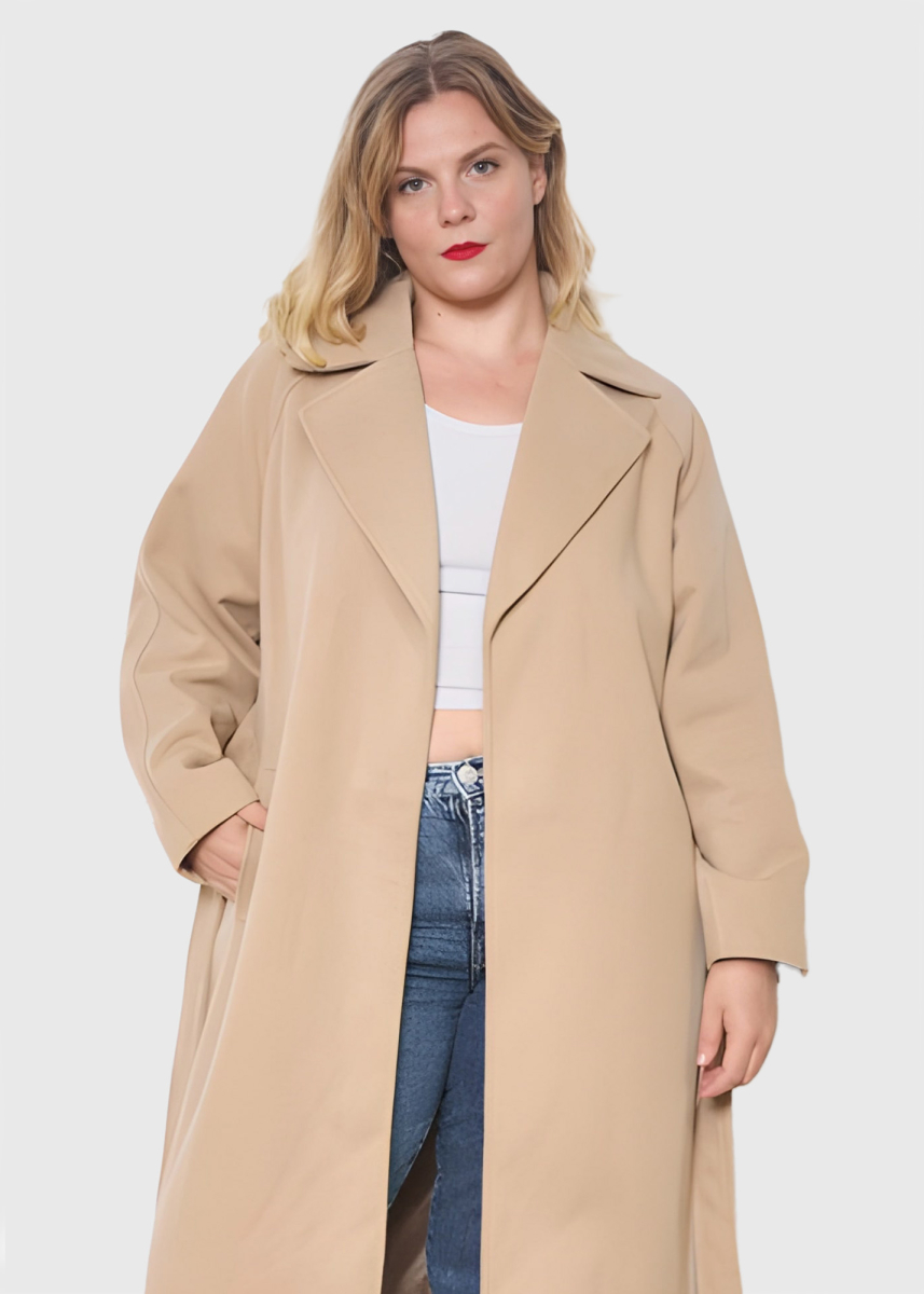 Jessica бежевое пальто Большого Размера с поясом