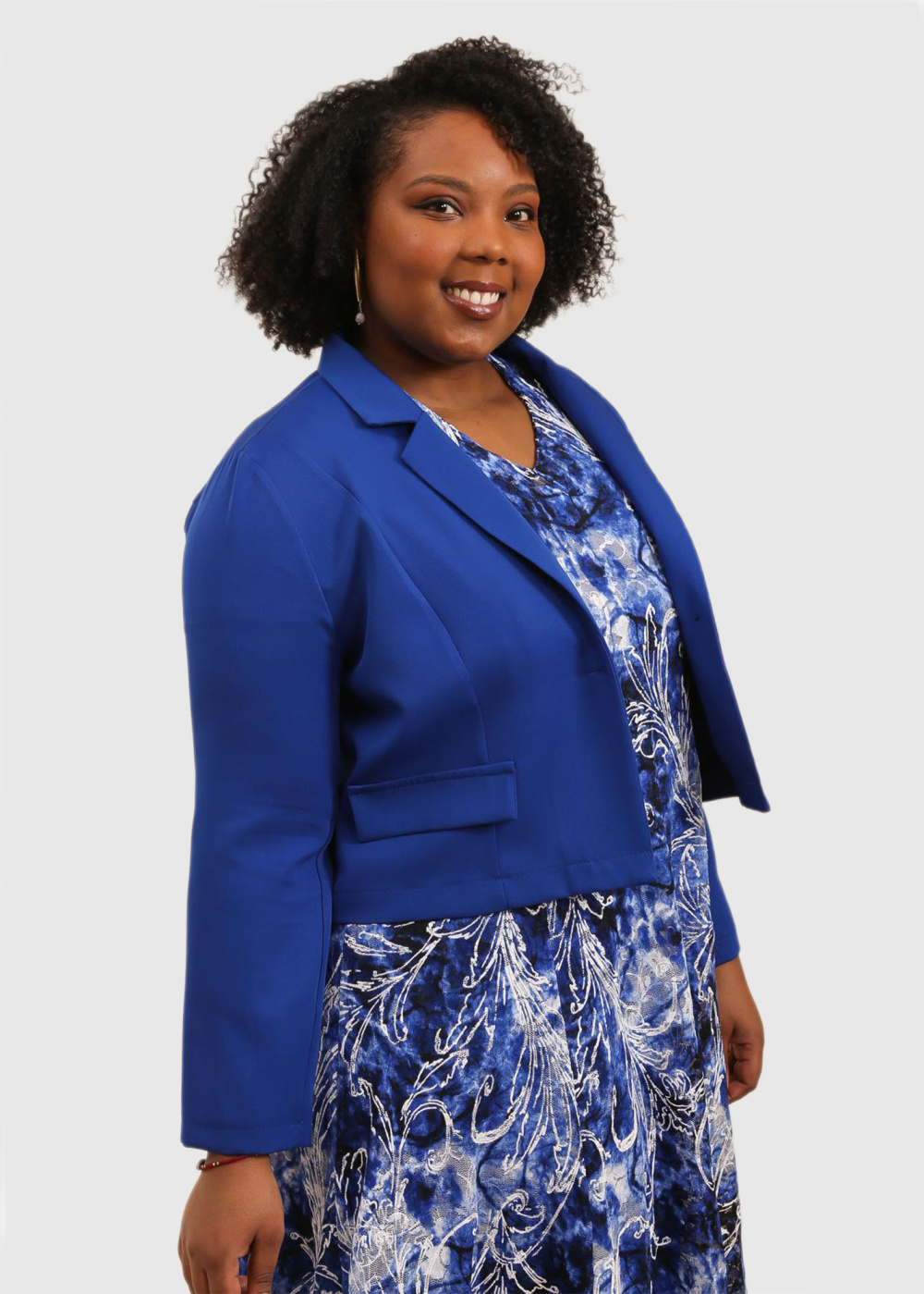 Audrina синий укороченный пиджак Большого Размера