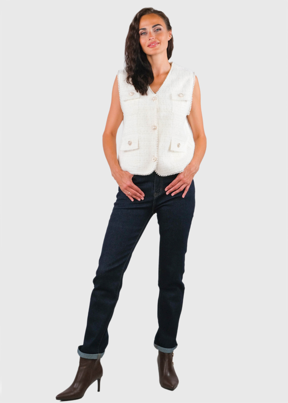 Zelena белая жилетка на пуговицах