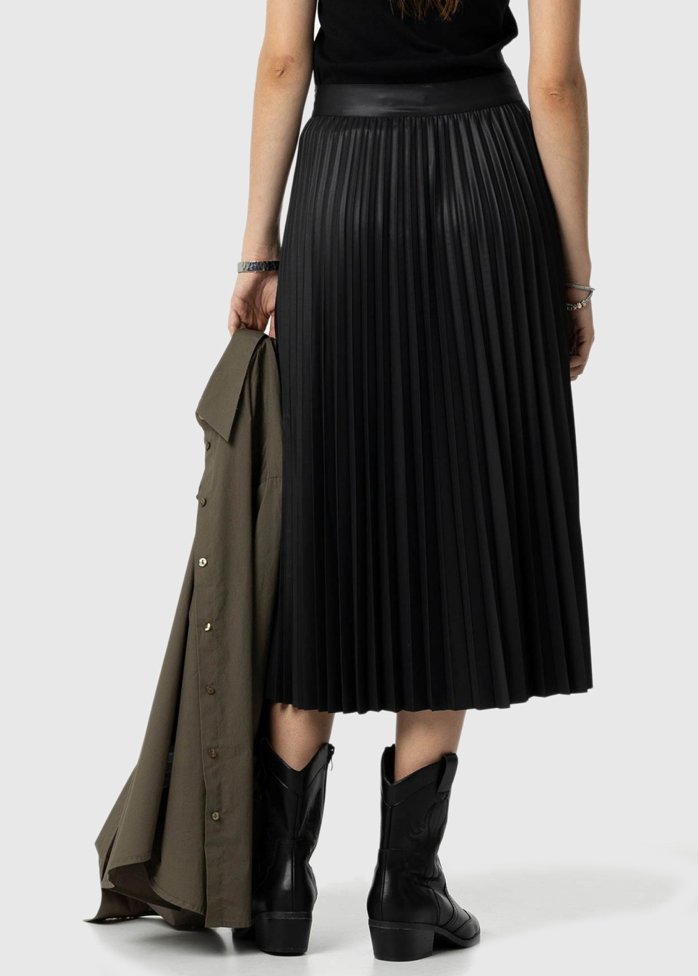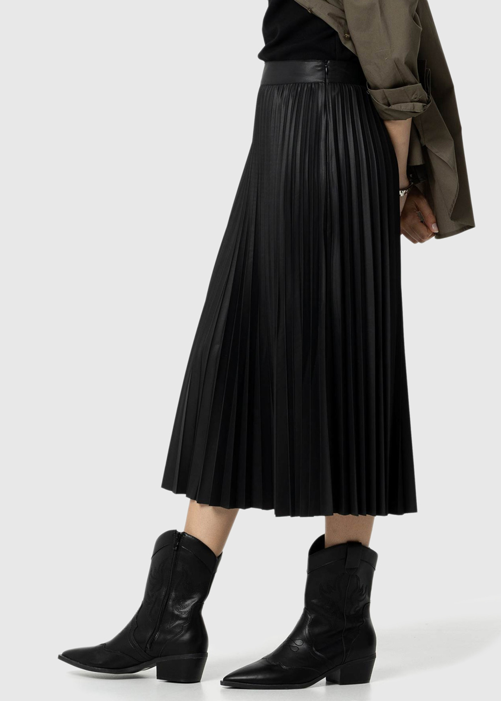Черная плиссированная юбка с молнией сбоку