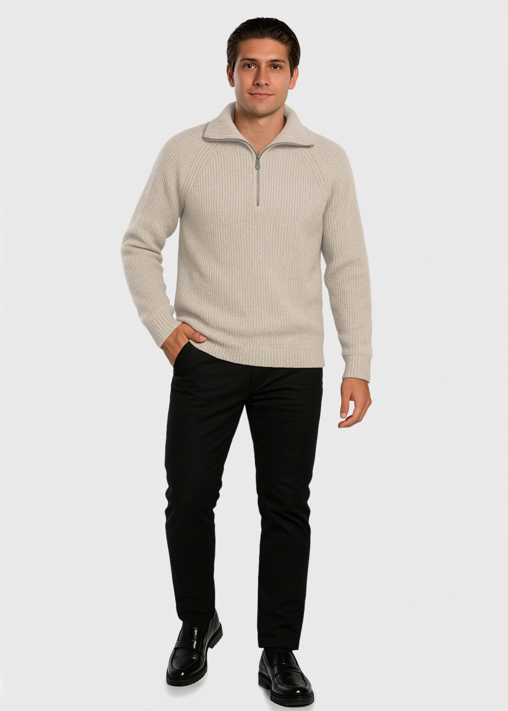Бежевый свитер на молнии