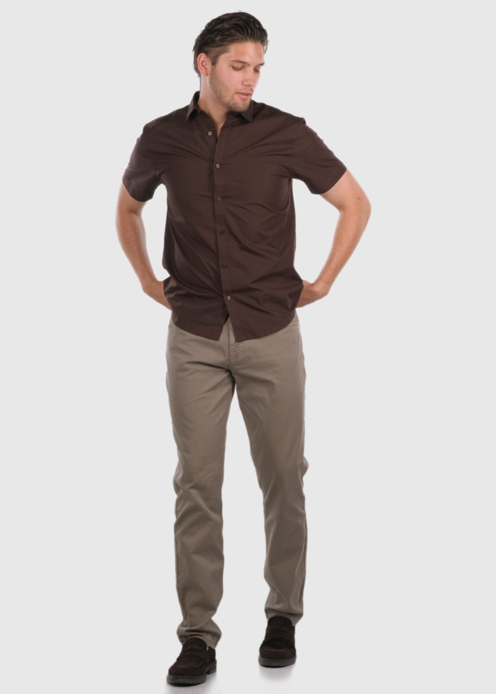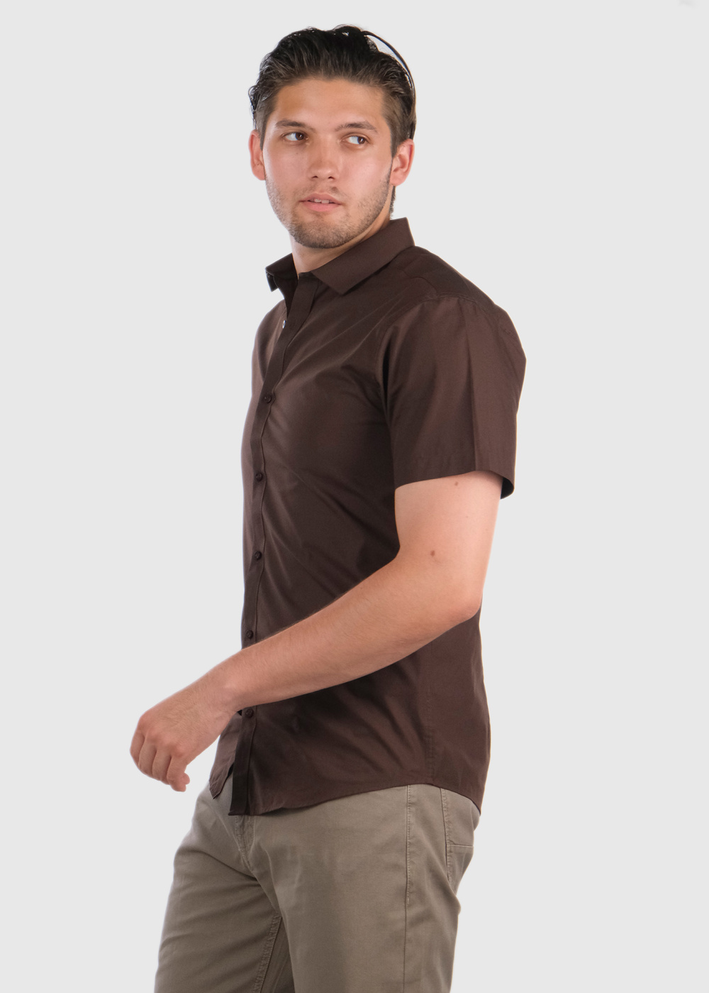 Josué Slim Fit темно-коричневая рубашка с короткими рукавами