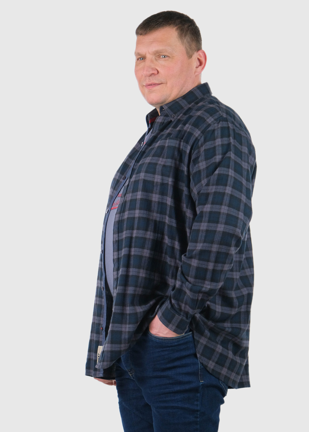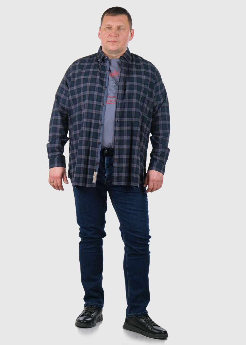 Luton синяя мужская рубашка Большого размера в клетку