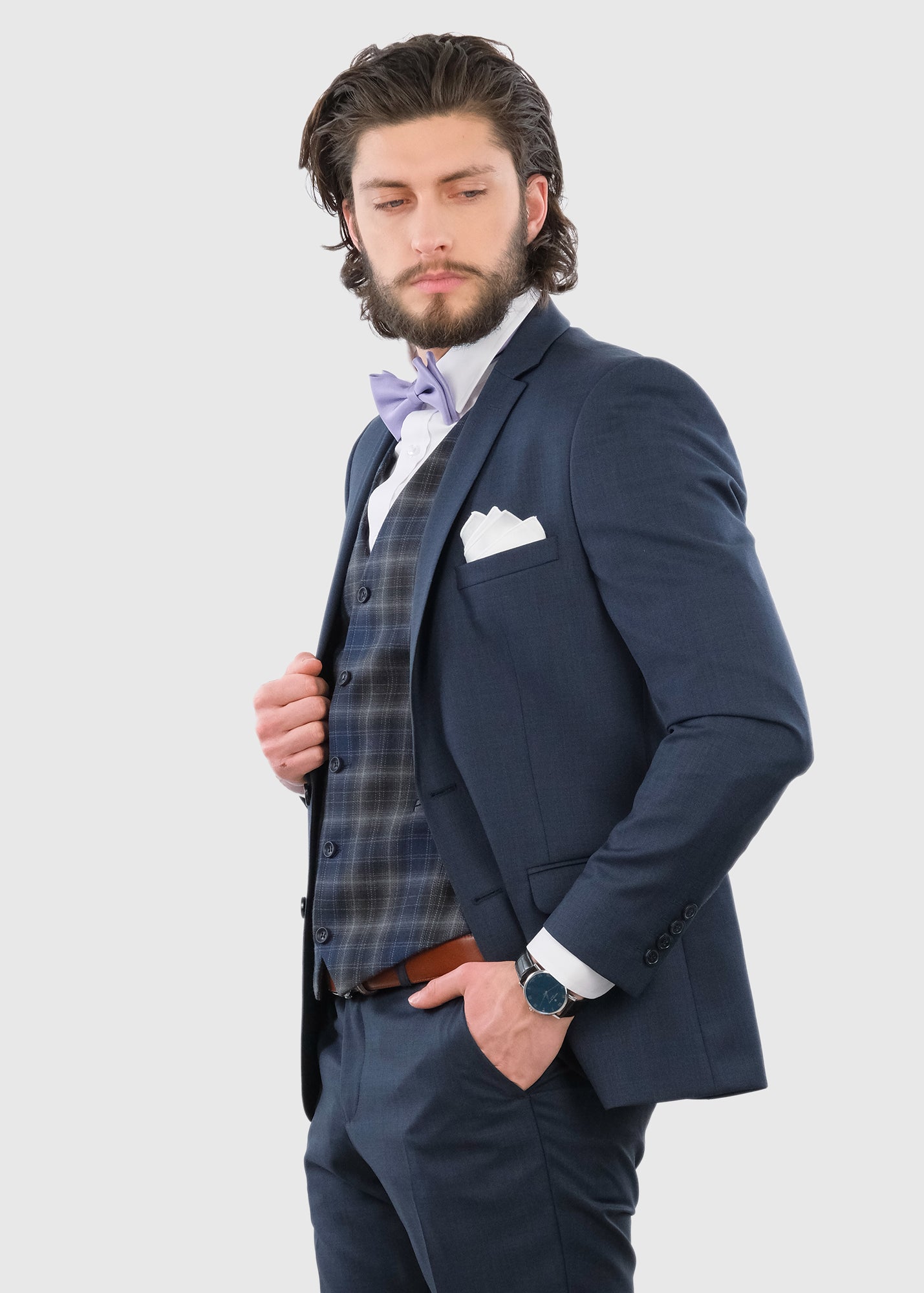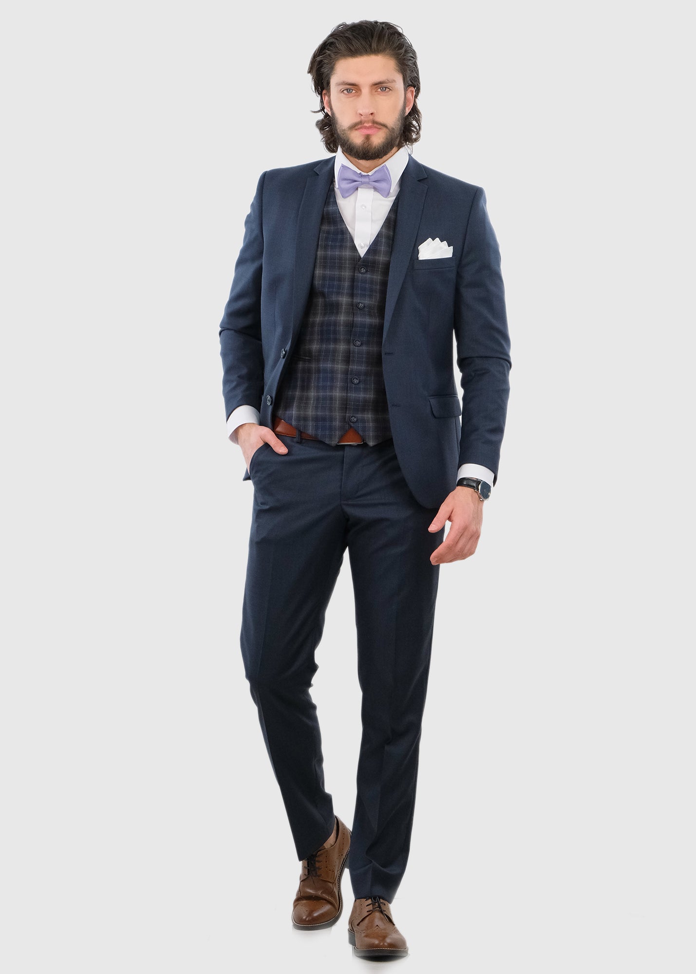 Raffaello темно-синий приталенный костюм с шерстью