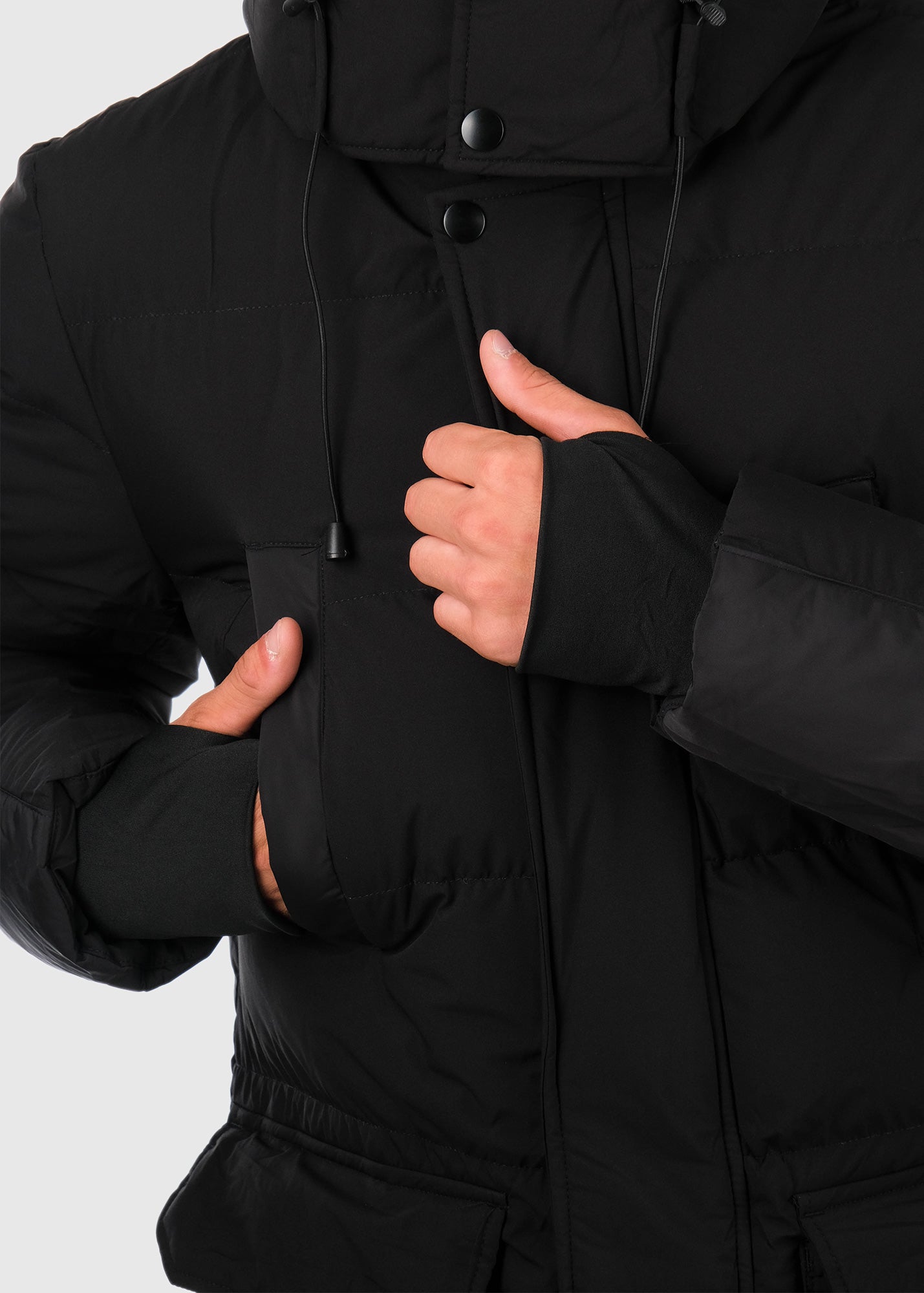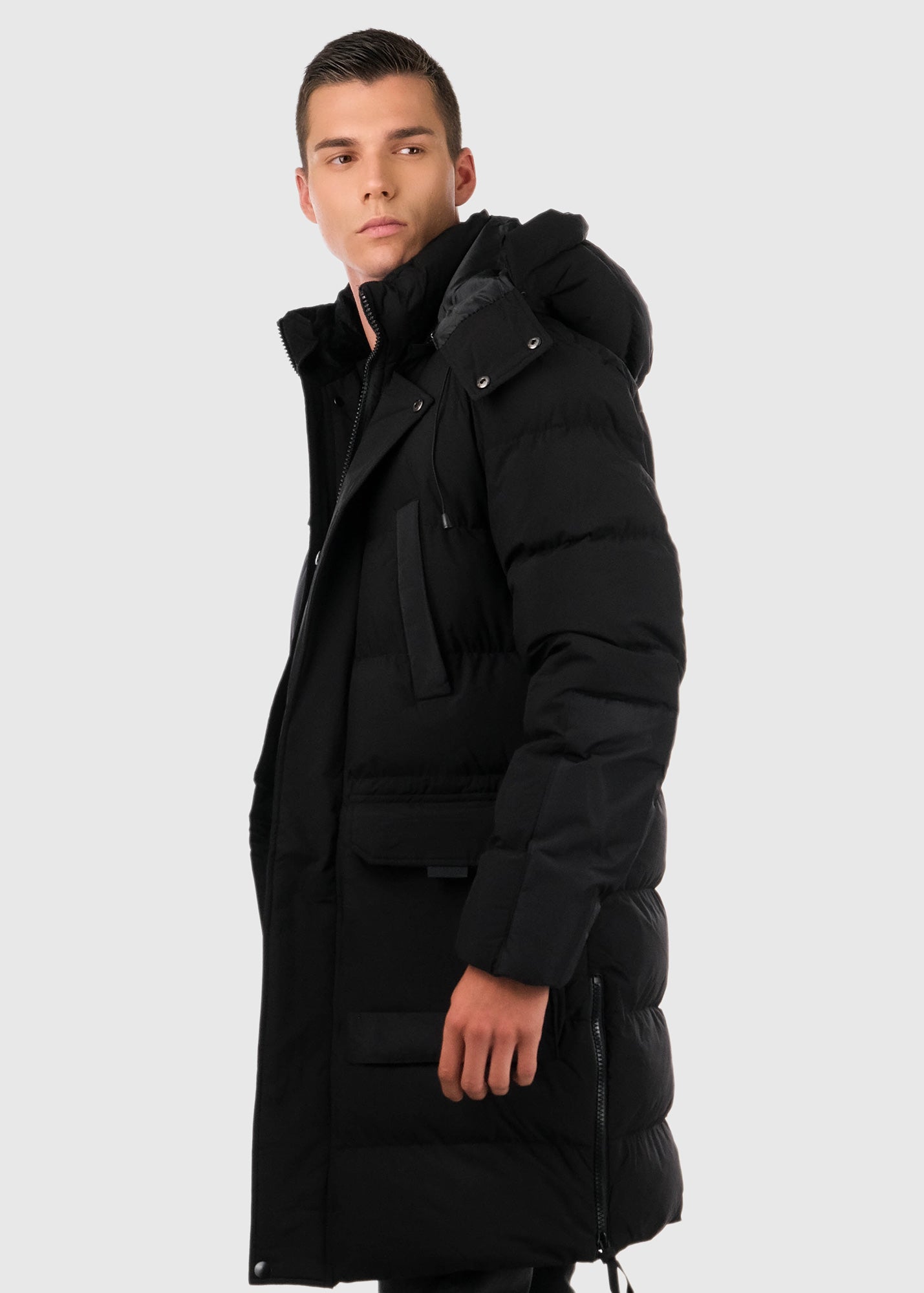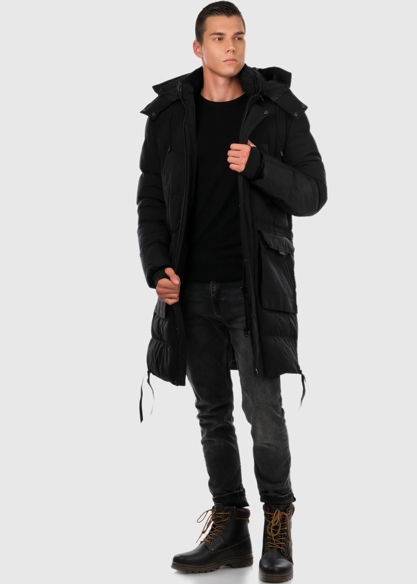 Черная удлененая куртка с накладными карманами