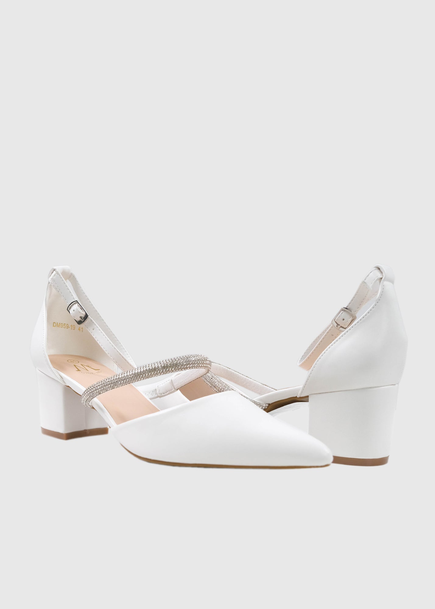 Edvige baltas sieviešu kurpes ar biezu papēdi
